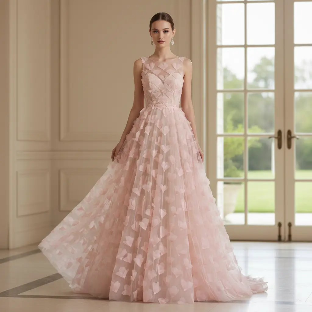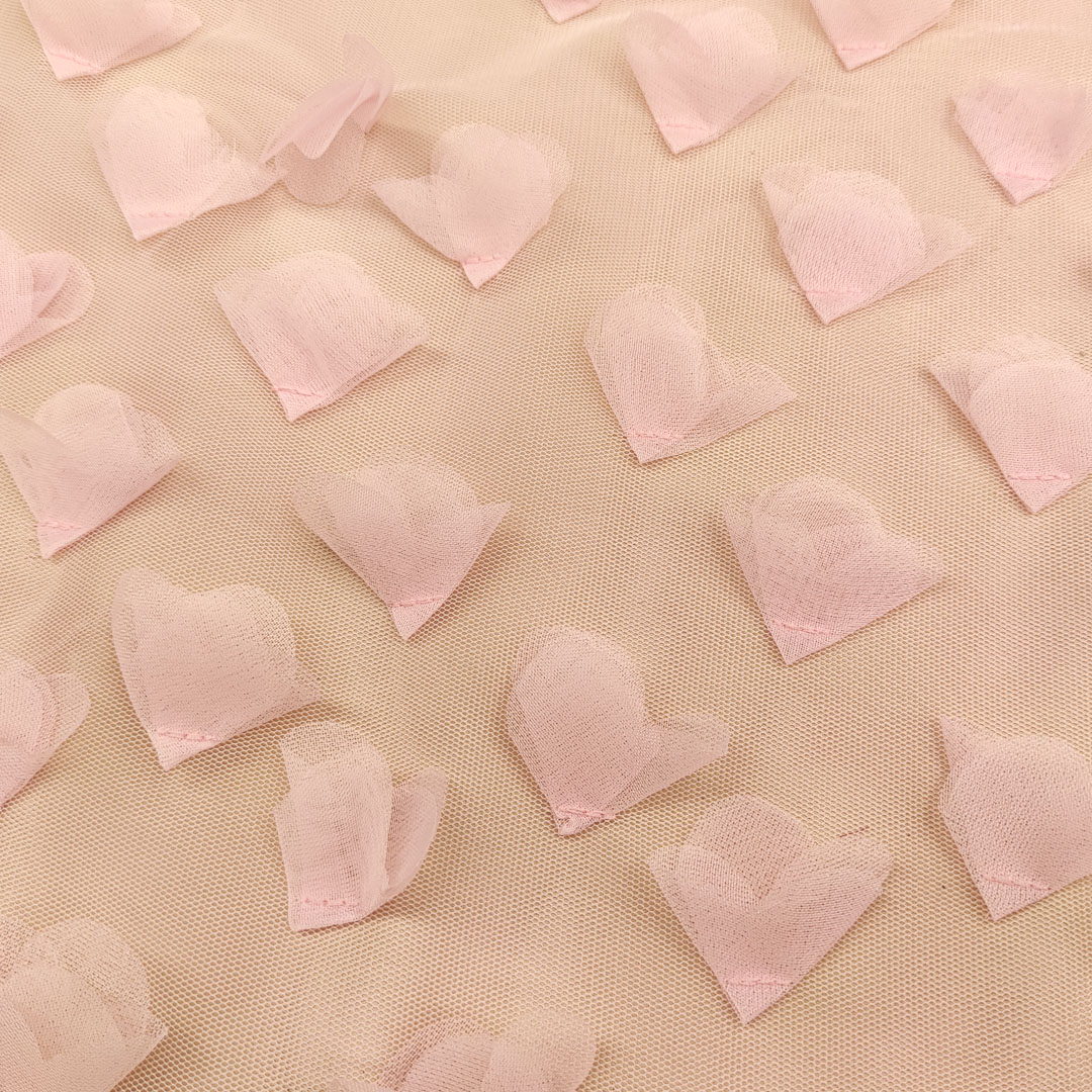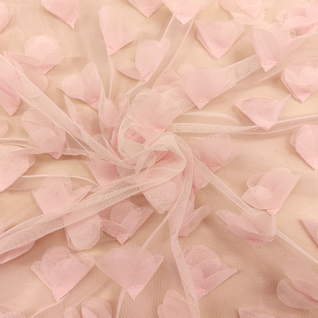 Tessuto Tulle mano seta ricamato con petali in 3D rosa chiaro