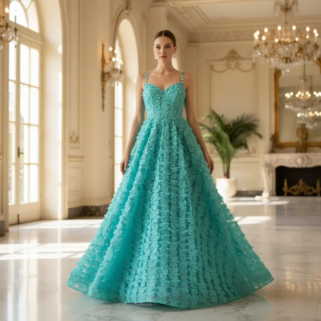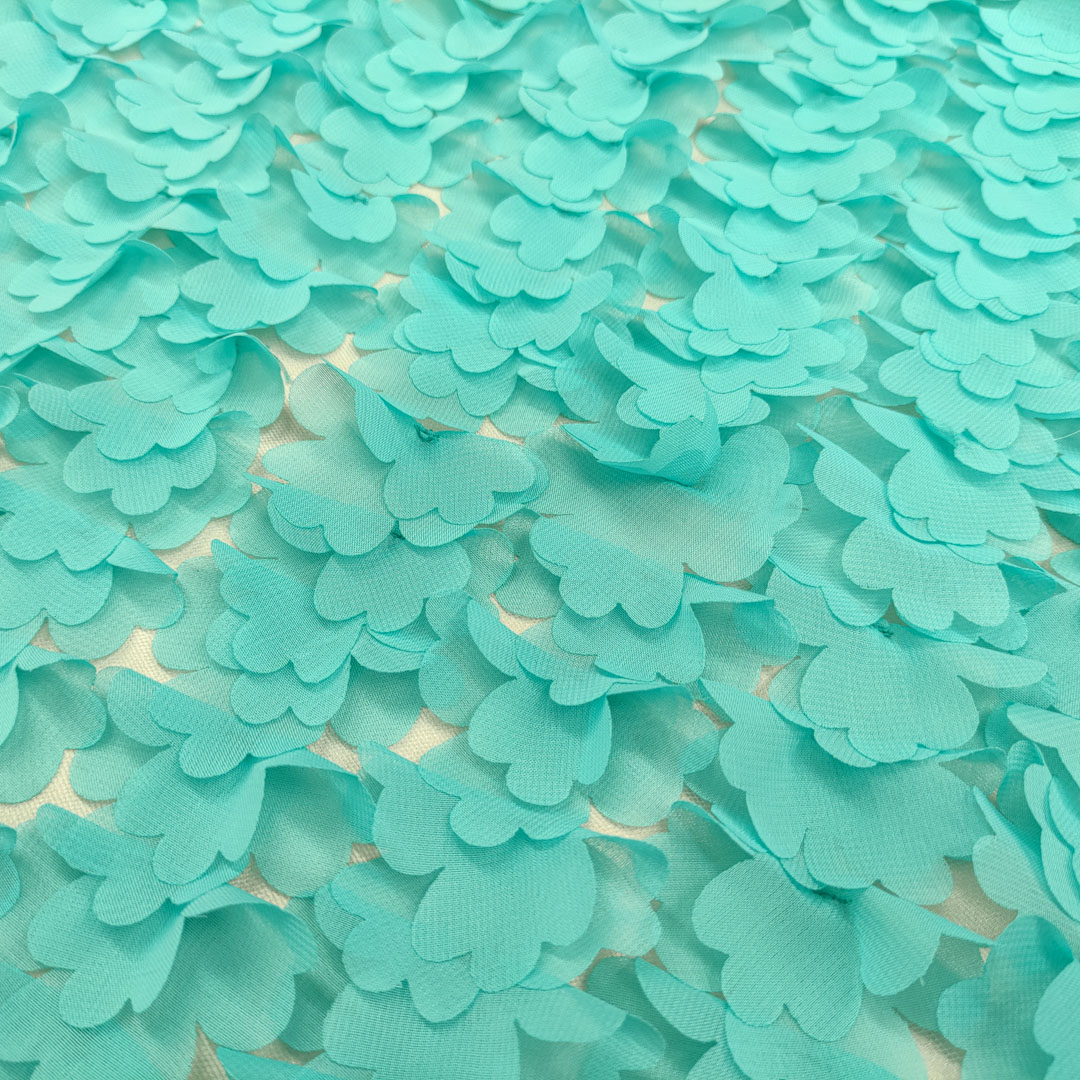 Tessuto Tulle mano seta ricamato con petali in 3D tiffany