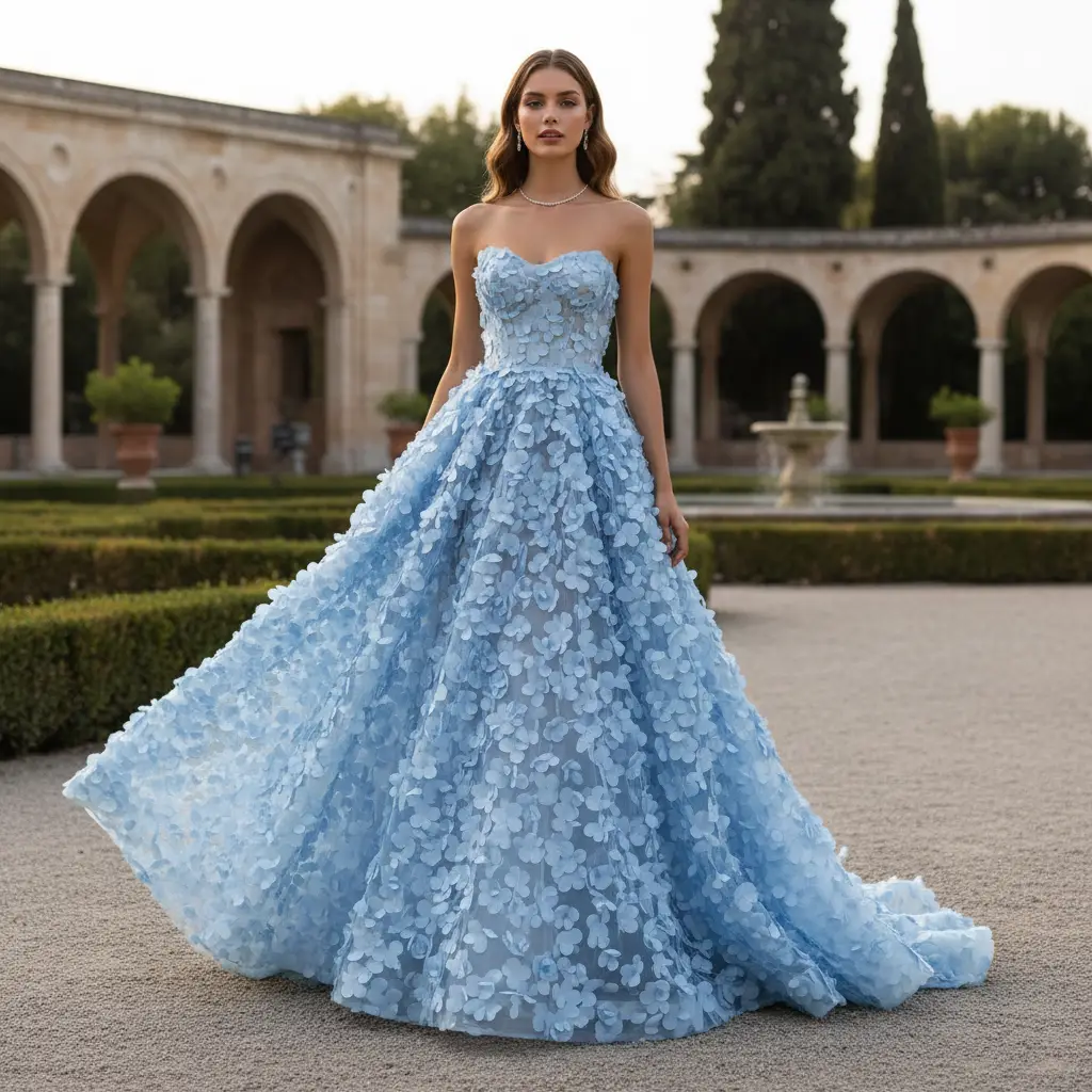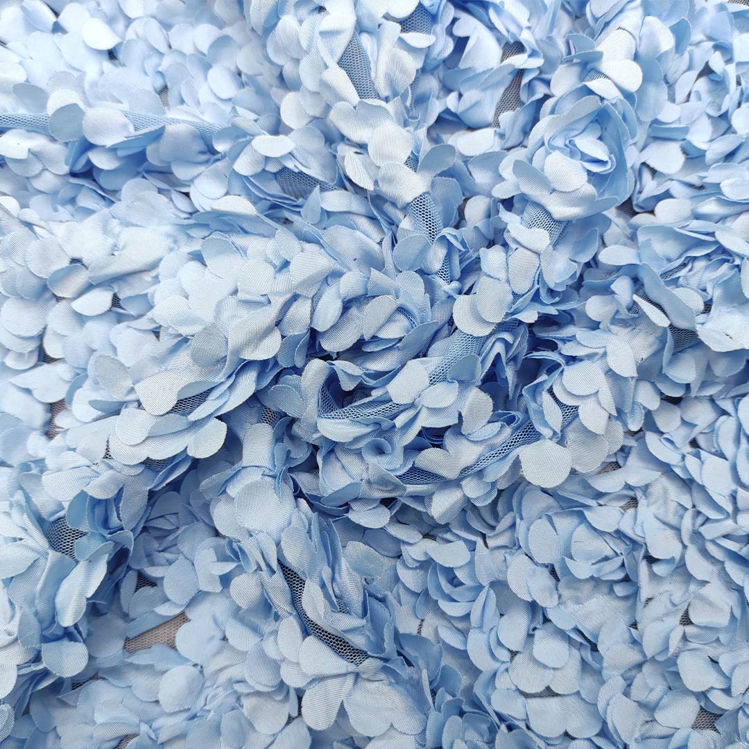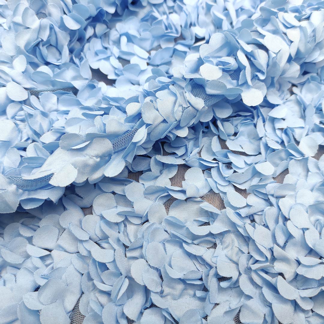 Tessuto Tulle mano seta ricamato con petali 3D dalla mano morbida, voluminosa e fluente, ideale per creare capi sartoriali da cerimonia e per le grandi occasioni originali e alla moda.