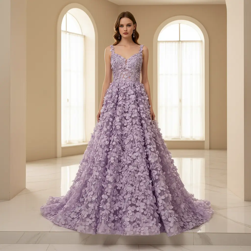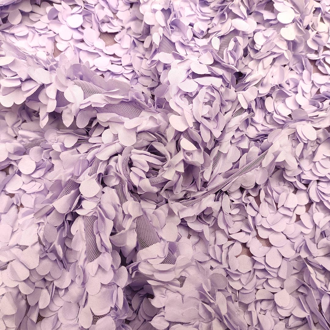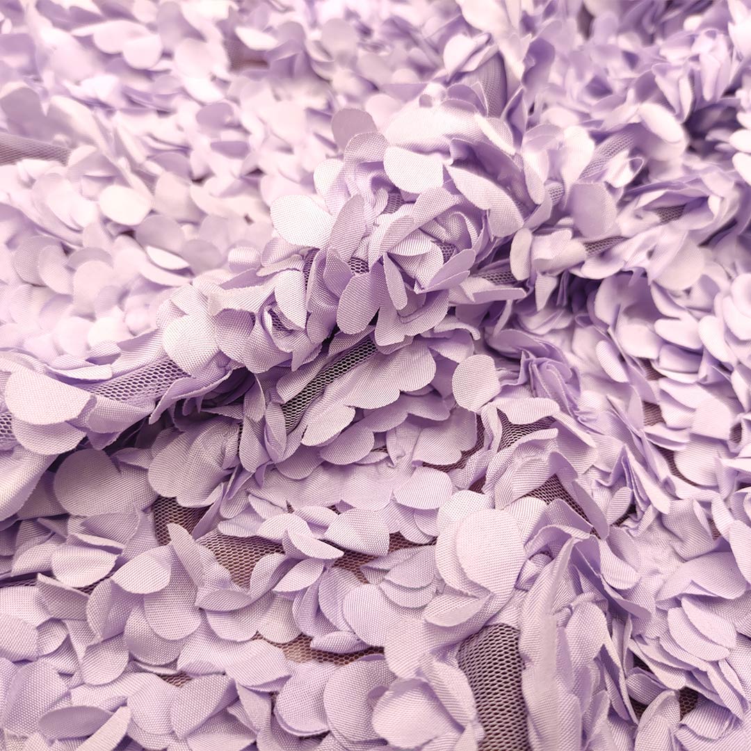 Tessuto Tulle mano seta ricamato con petali 3D dalla mano morbida, voluminosa e fluente, ideale per creare capi sartoriali da cerimonia e per le grandi occasioni originali e alla moda.