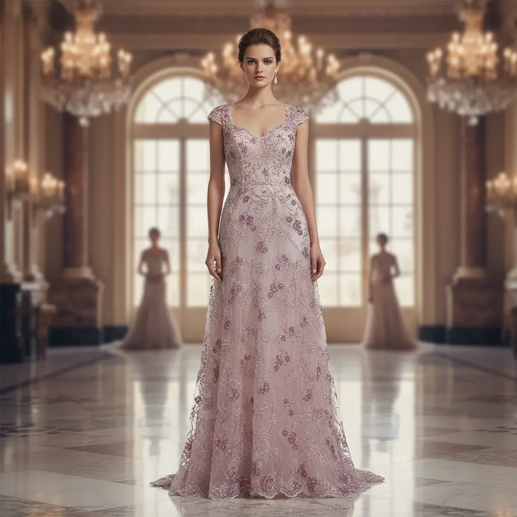 Tessuto Tulle mano seta ricamato con perle e con pietre, ideale per realizzare capi da cerimonia esclusivi ed eleganti.
