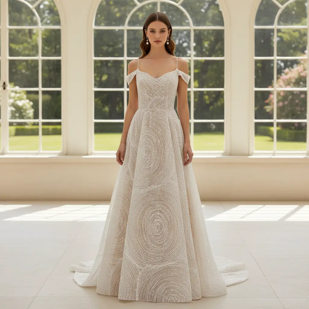 Tessuto Tulle mano seta ricamato ideale per realizzare capi da cerimonia esclusivi ed eleganti.