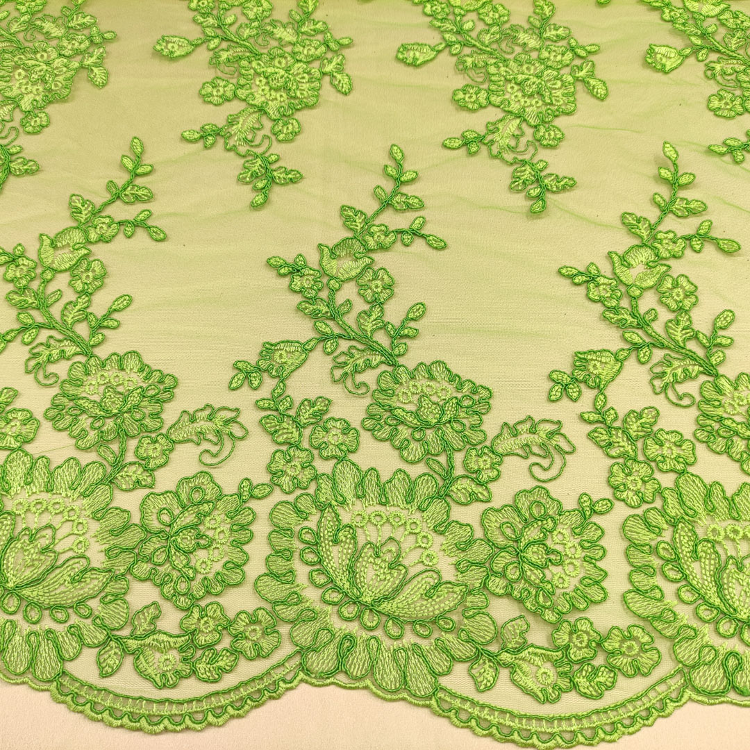 Tessuto Tulle mano seta ricamato motivo floreale mela