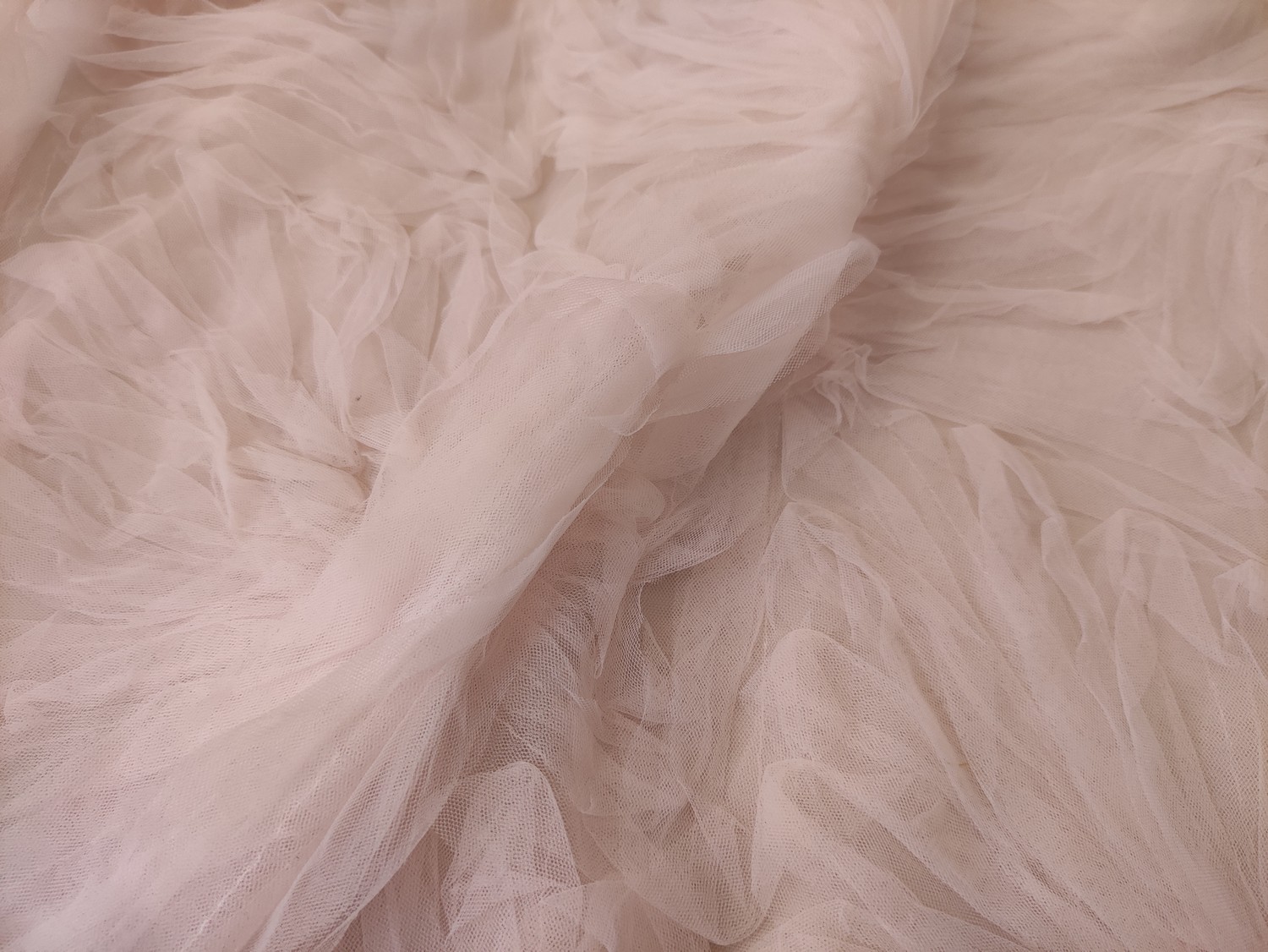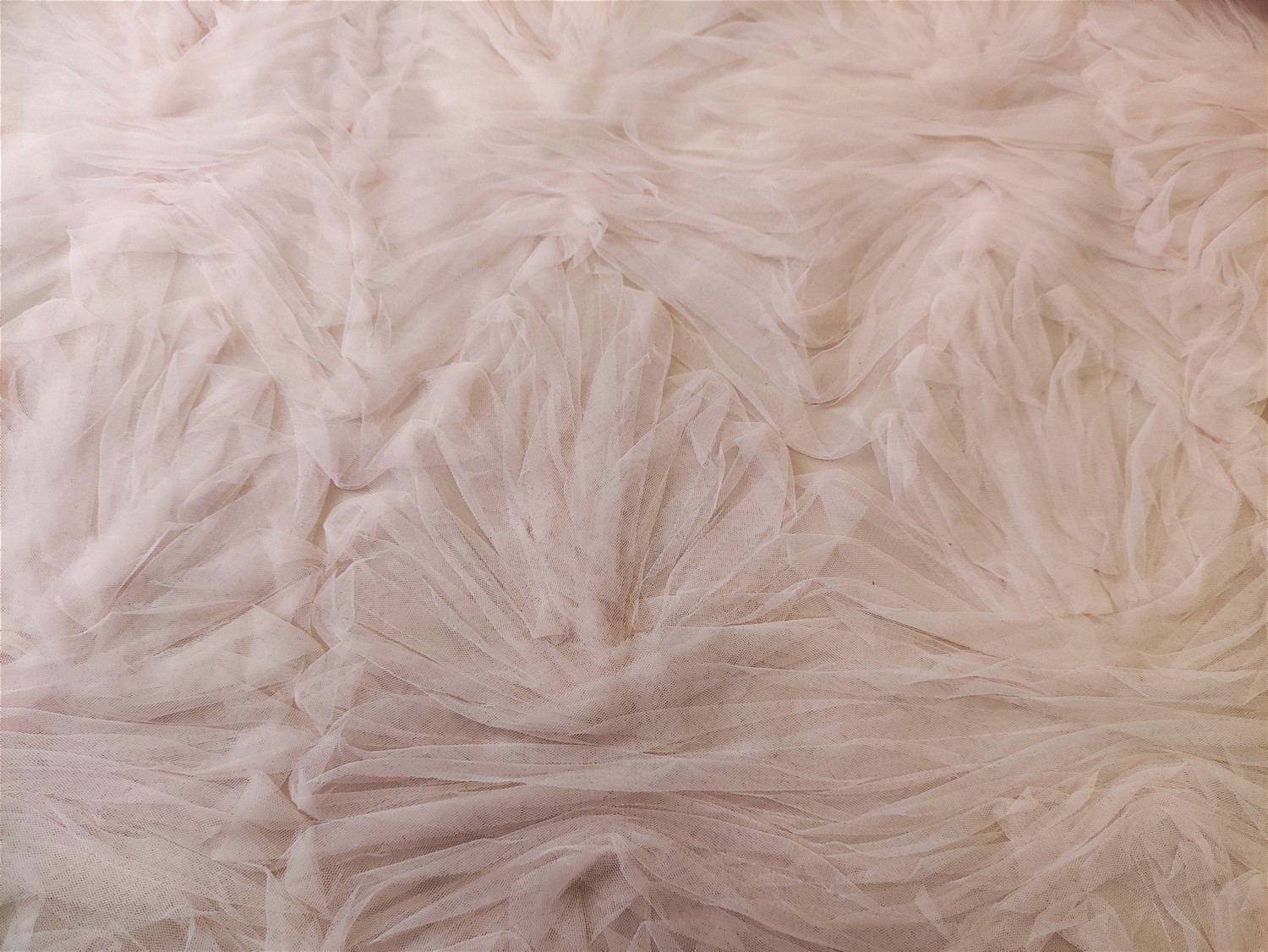 Tessuto Tulle mano seta ricamato dalla mano morbida, voluminosa e fluente, ideale per creare capi sartoriali da cerimonia e per le grandi occasioni originali e alla moda.