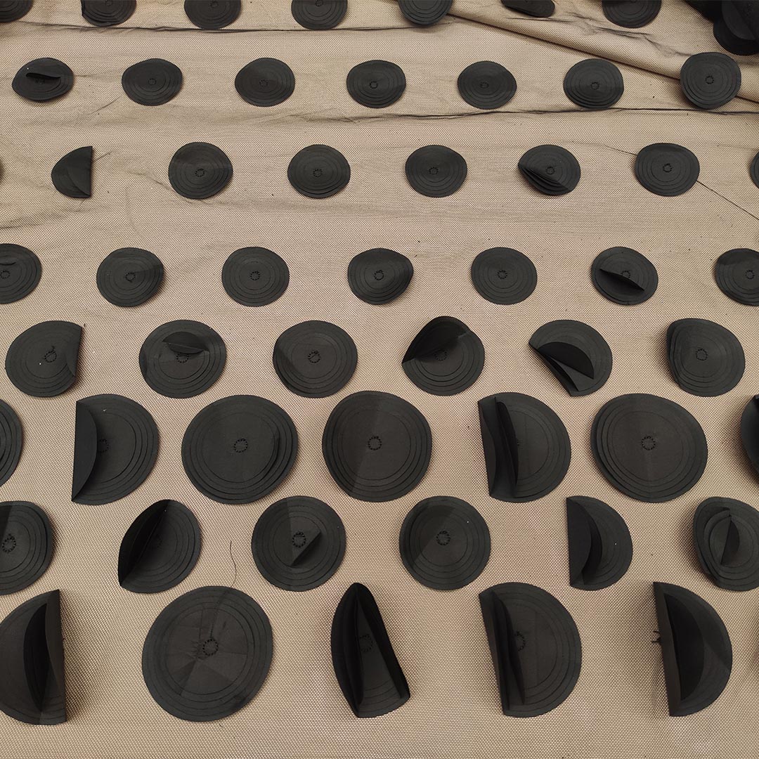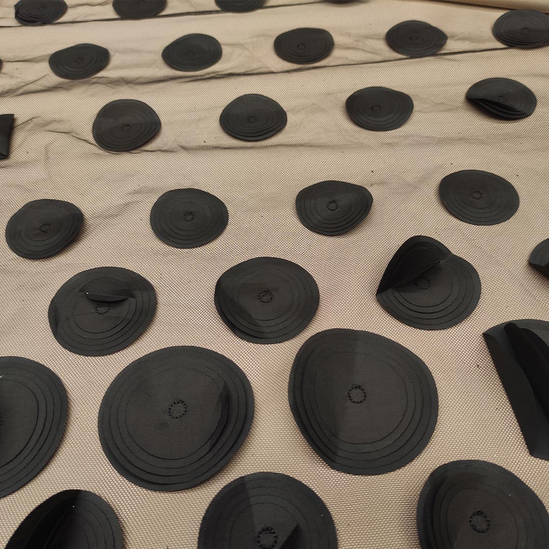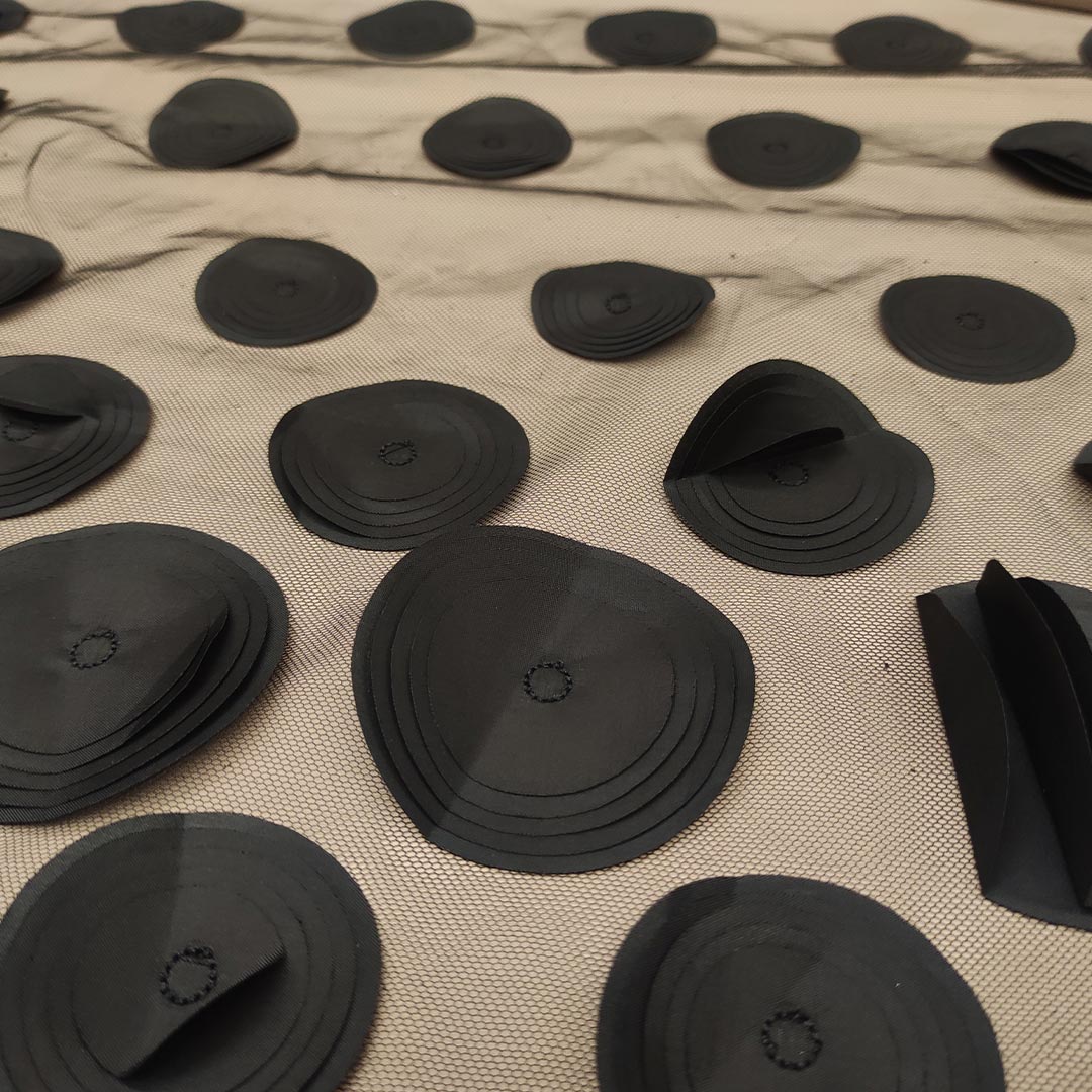Tessuto Tulle – pizzo mano seta ricamato con cerchi in 3D nero