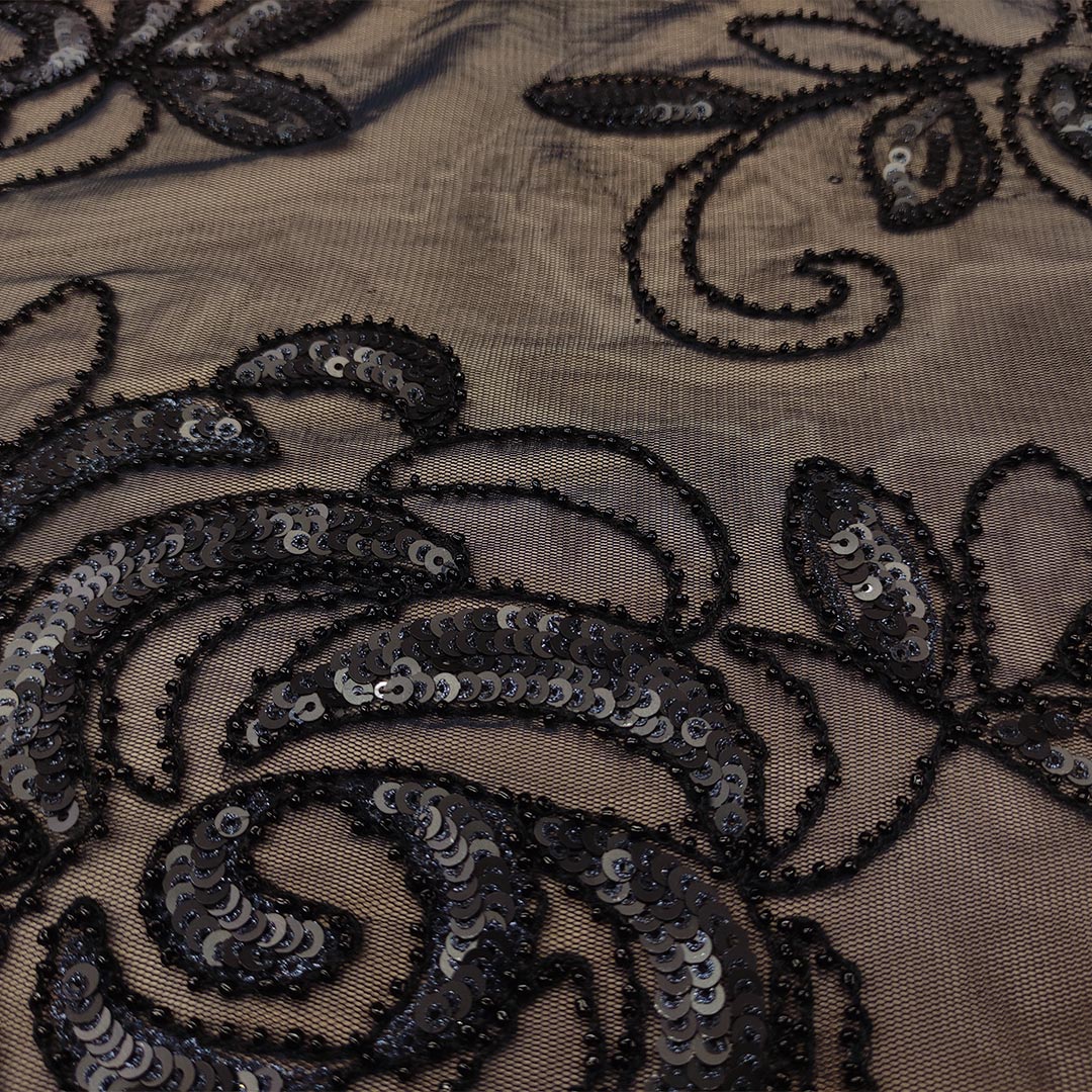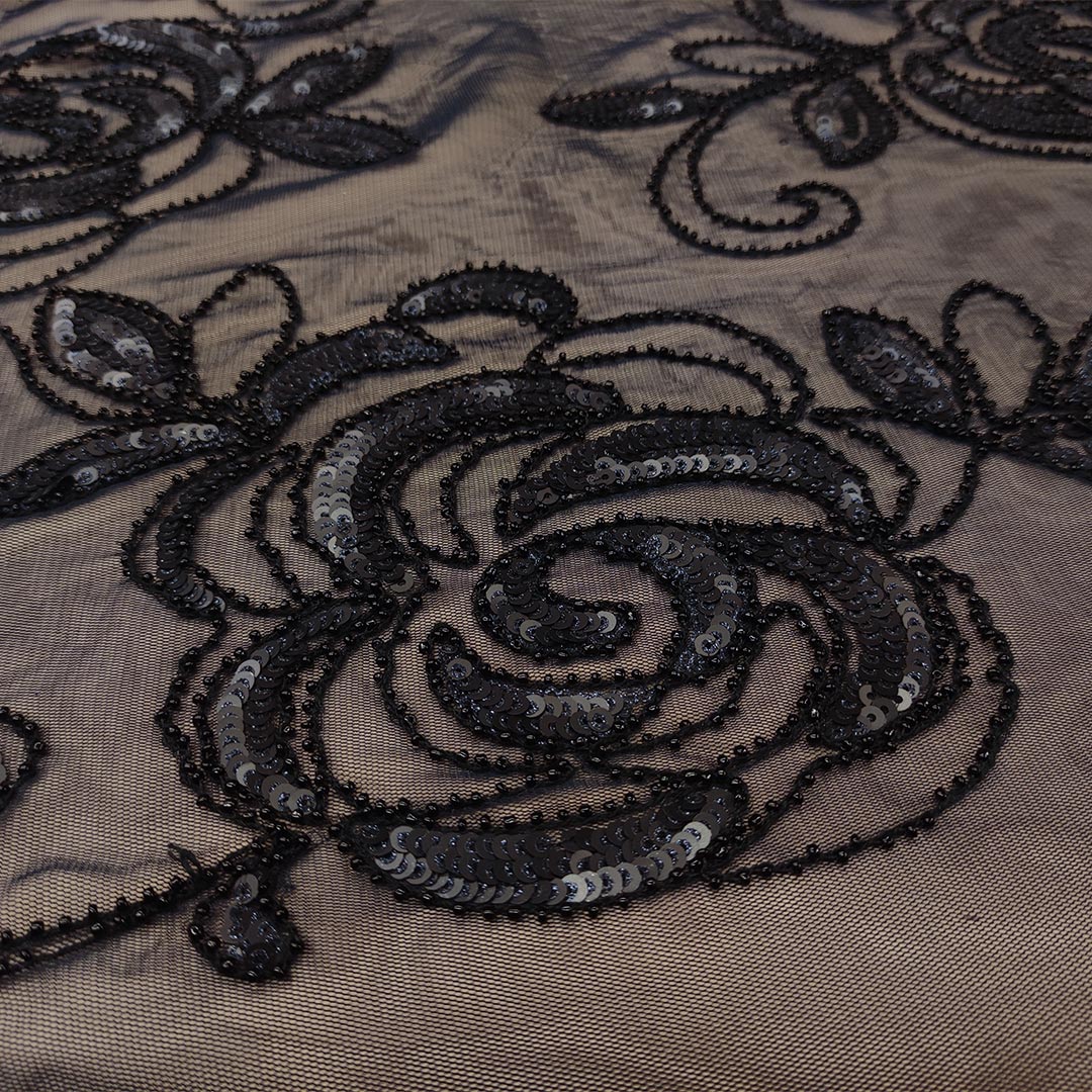 Tessuto Tulle mano seta ricamato con paillettes ideale per realizzare capi da cerimonia esclusivi ed eleganti.