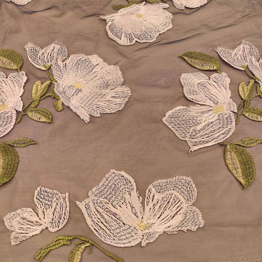 Tessuto Tulle – pizzo mano seta ricamato , ideale per realizzare capi da cerimonia esclusivi ed eleganti.