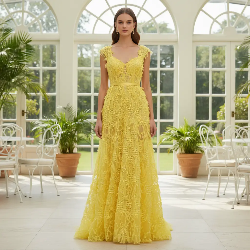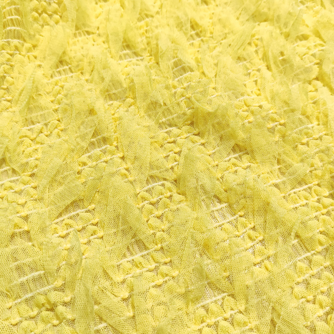 Tessuto Tulle ricamato con frange tinta unita giallo