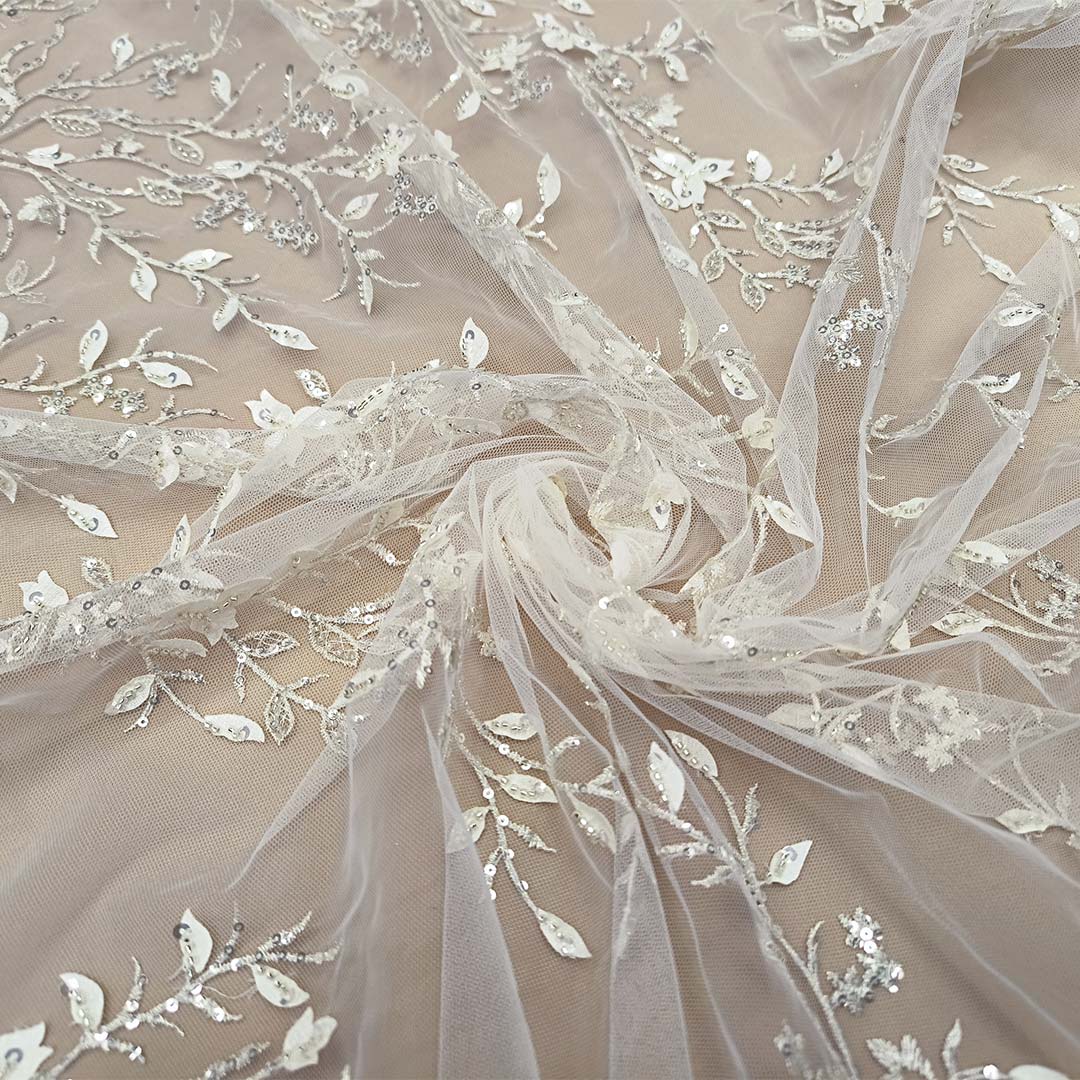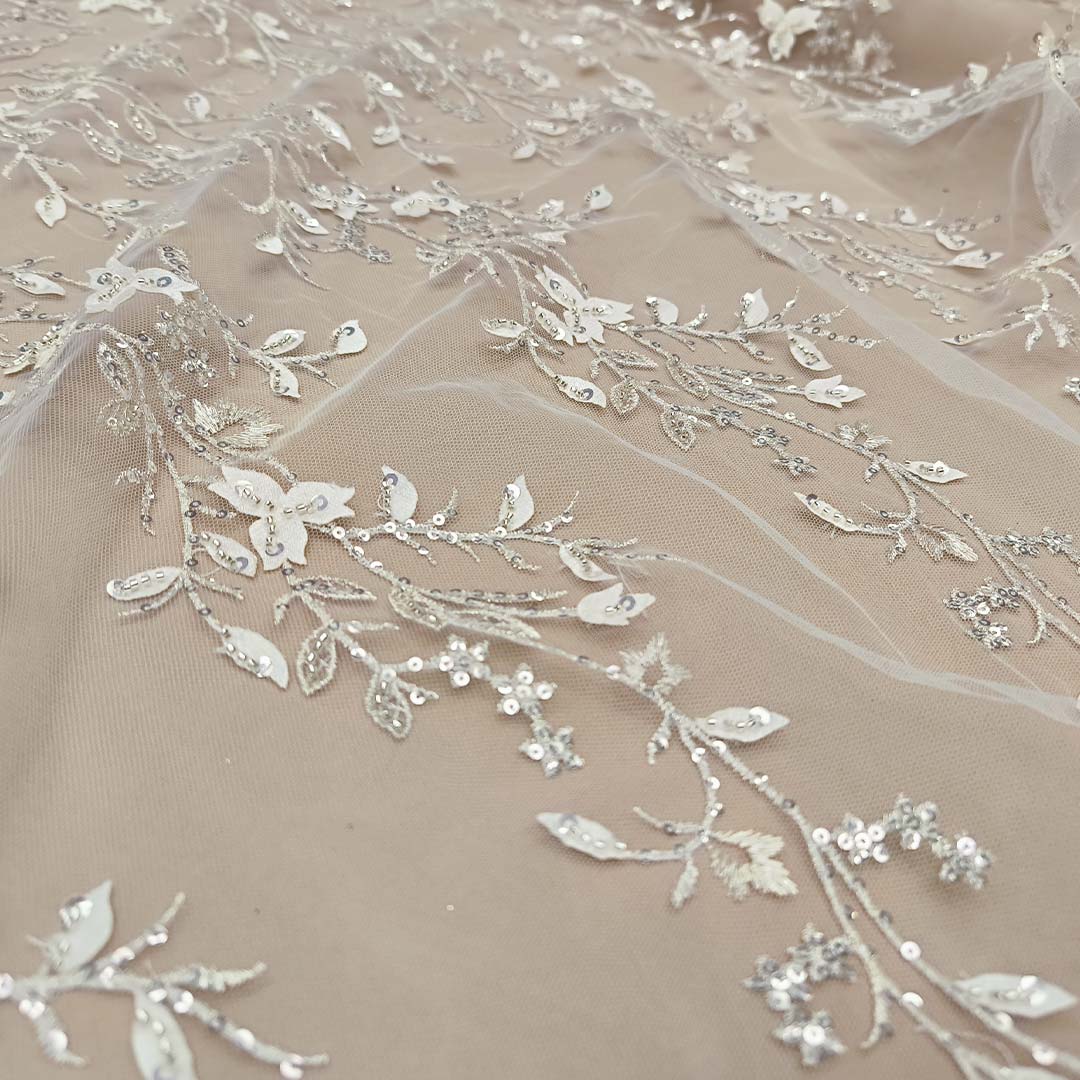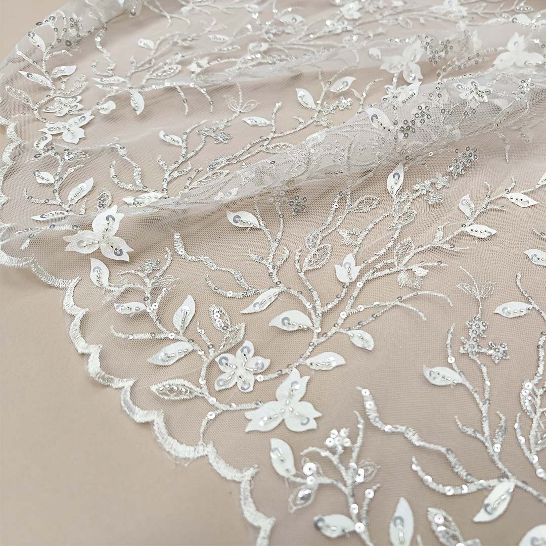 Tessuto Tulle Ricamato doppio smerlo con paillettes ideale per realizzare capi da cerimonia esclusivi ed eleganti.