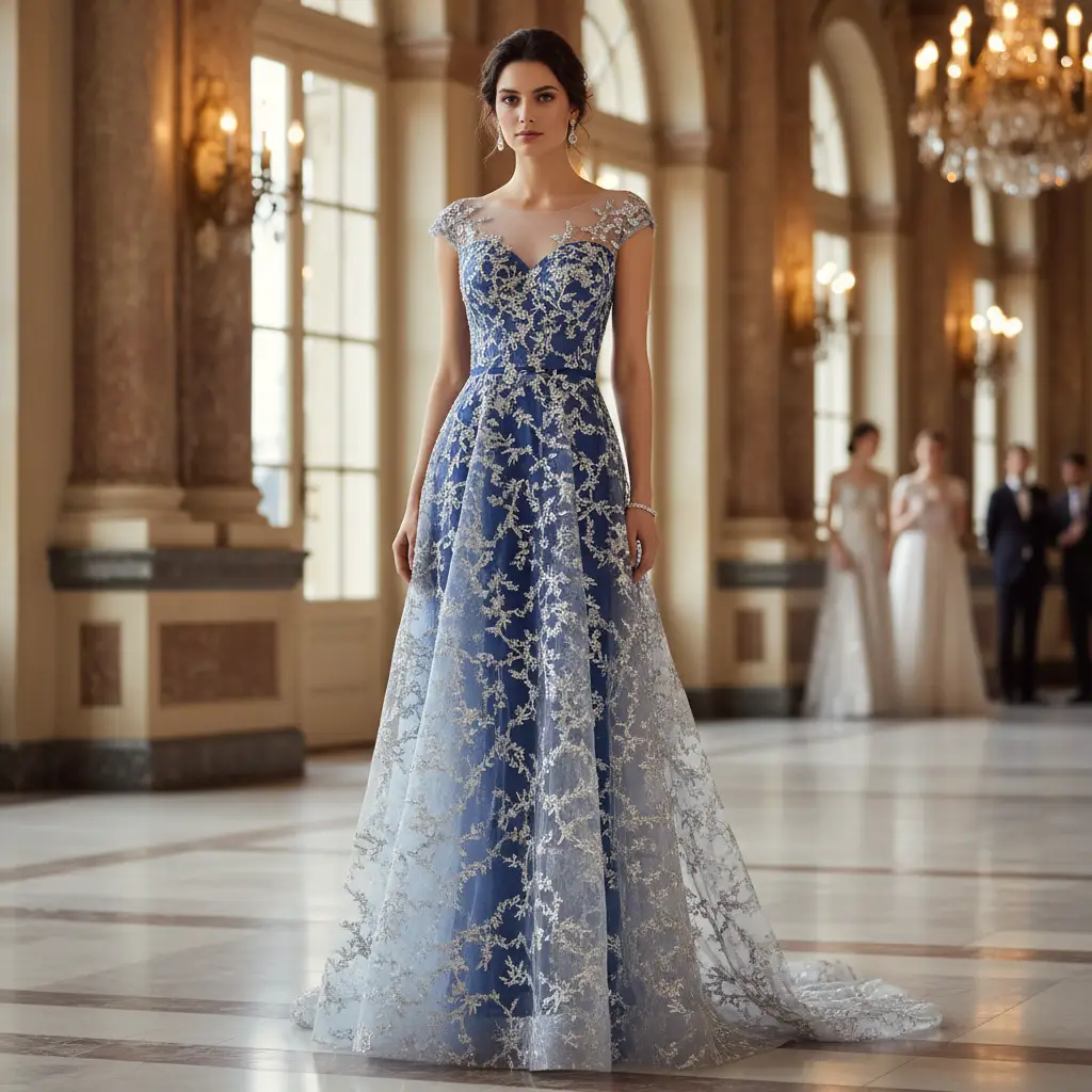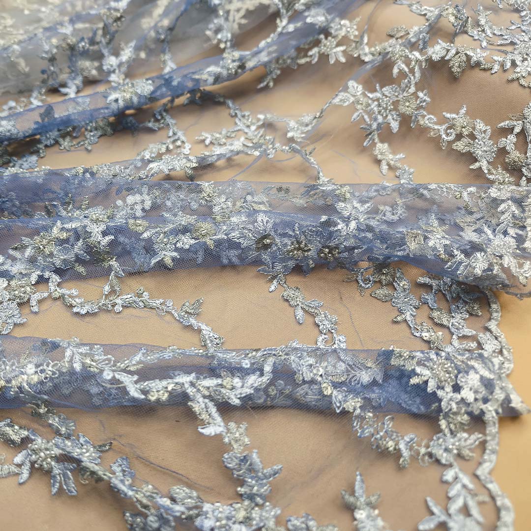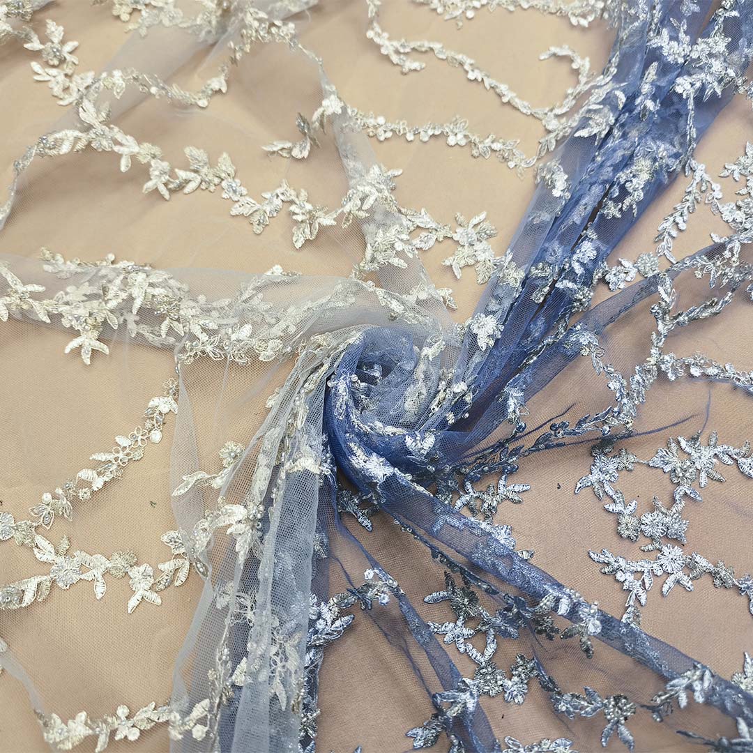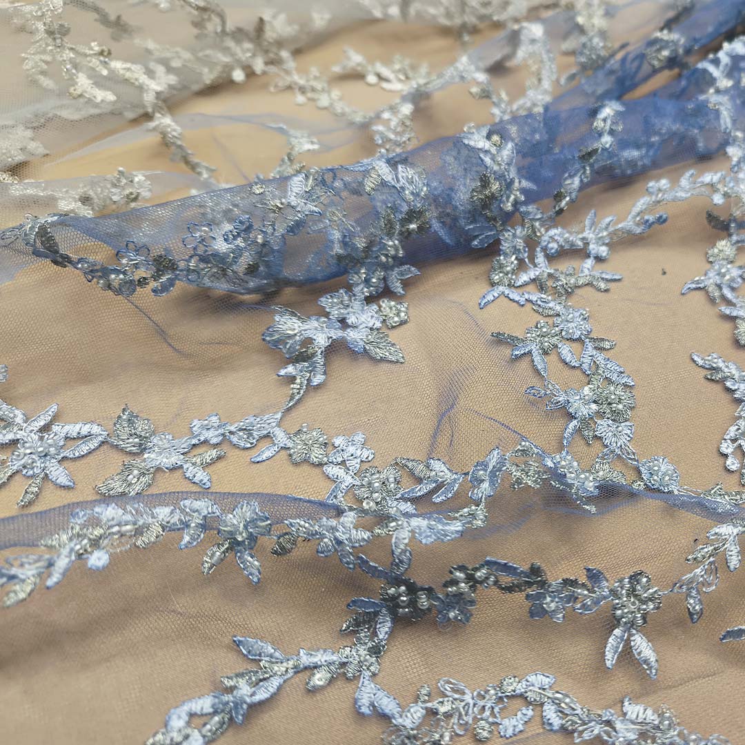 Tessuto Tulle Ricamato con perle motivo sfumato ideale per realizzare capi da cerimonia esclusivi ed eleganti.