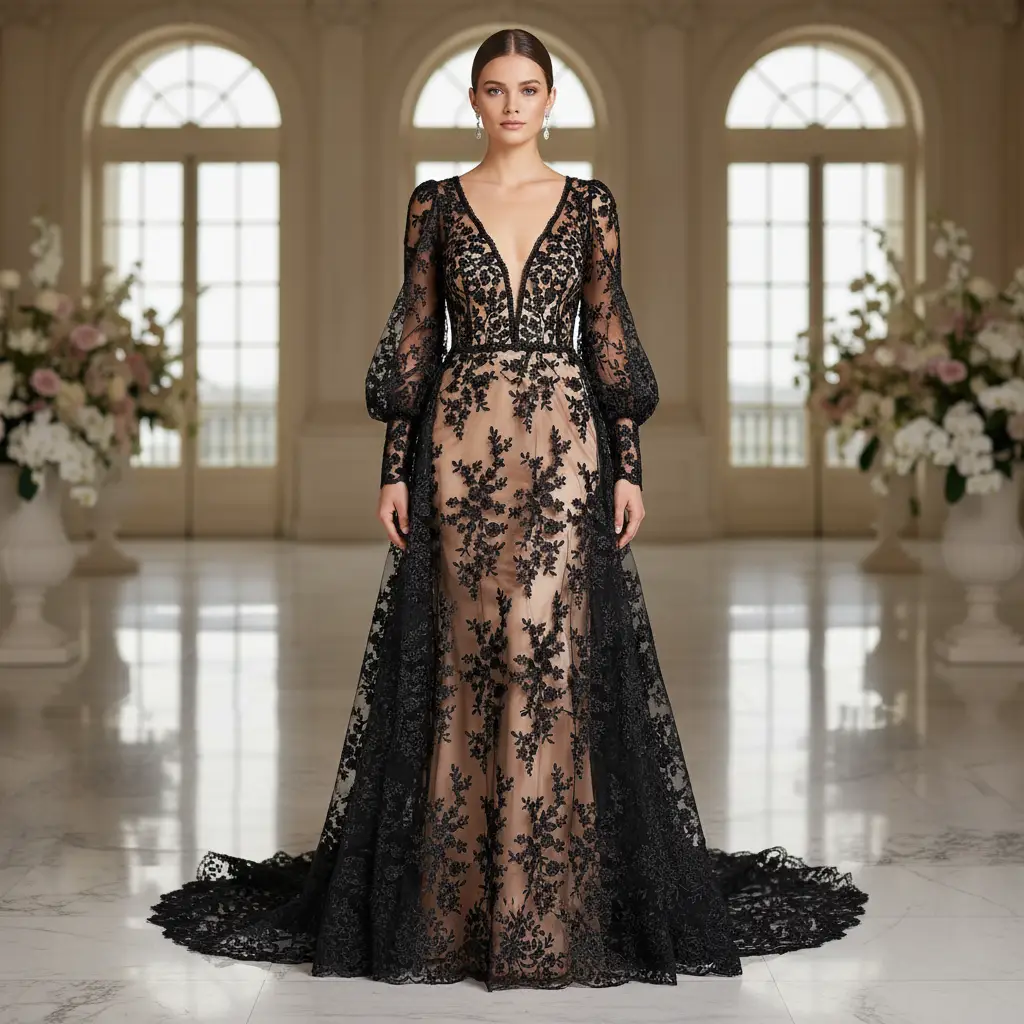 Tessuto Tulle Ricamato doppio smerlo motivo floreale ideale per realizzare capi da cerimonia esclusivi ed eleganti.