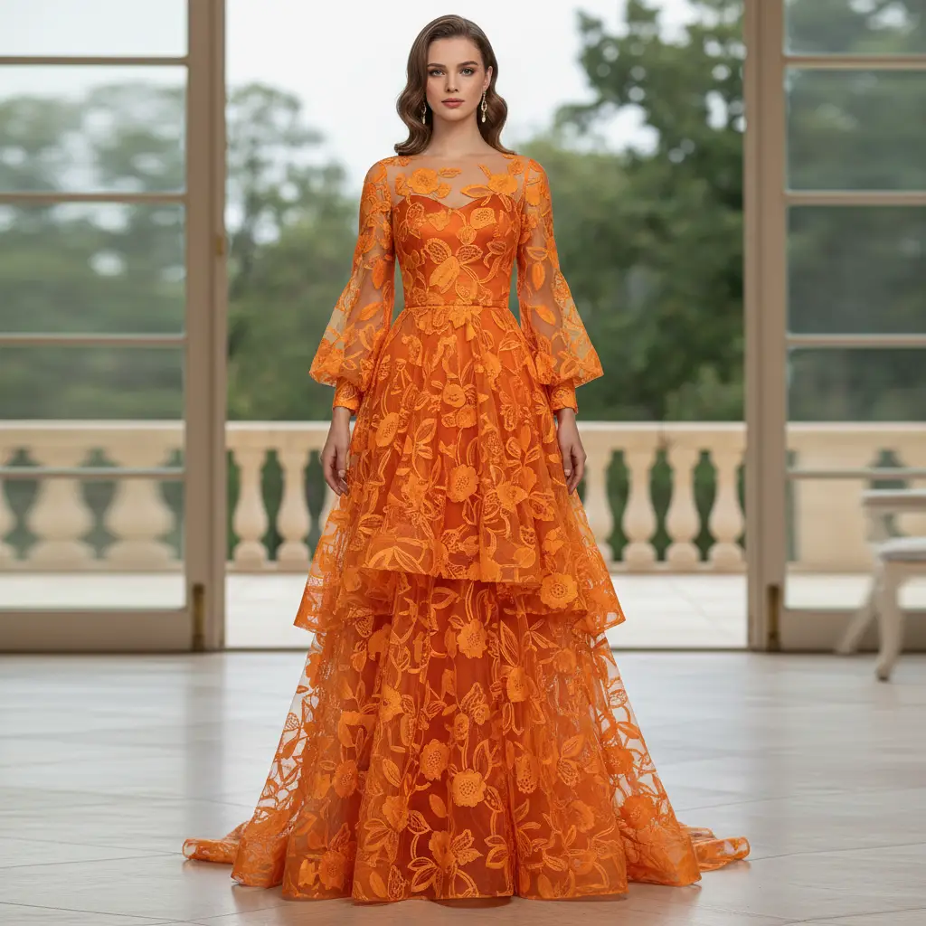 Tessuto Tulle ricamato ideale per creare capi eleganti da cerimonia e per le grandi occasioni.