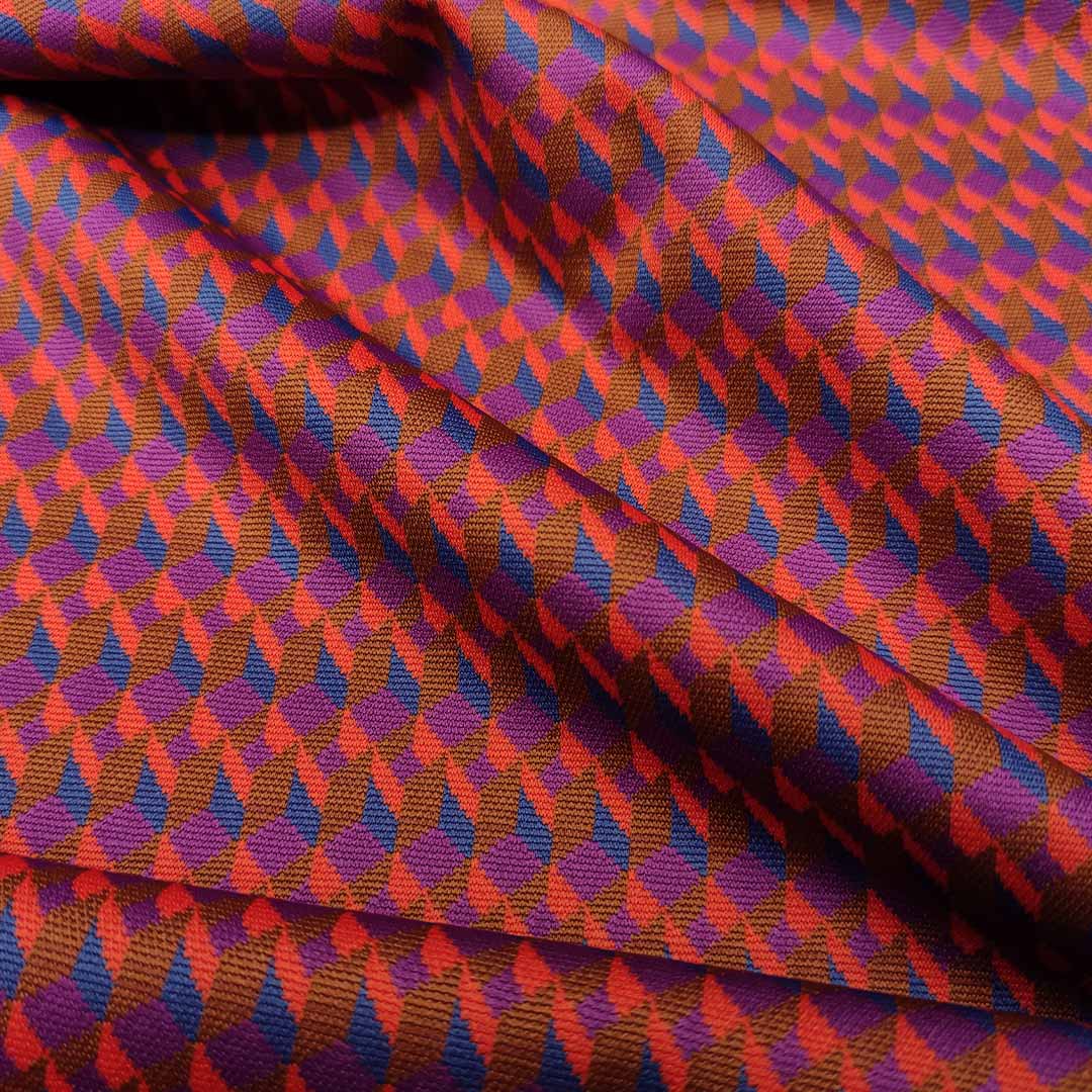 Tessuto Punto Milano a fantasia motivo geometrico arancione – viola – blu