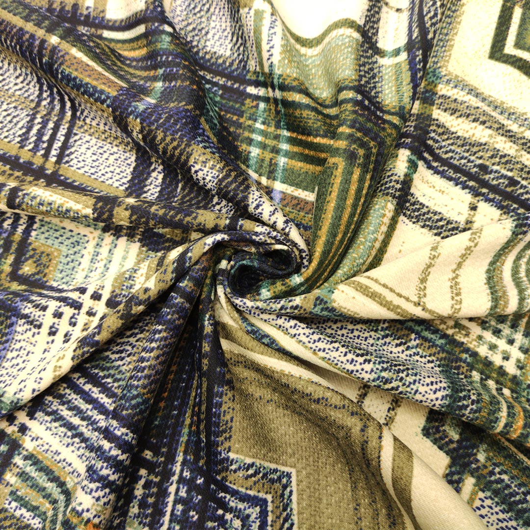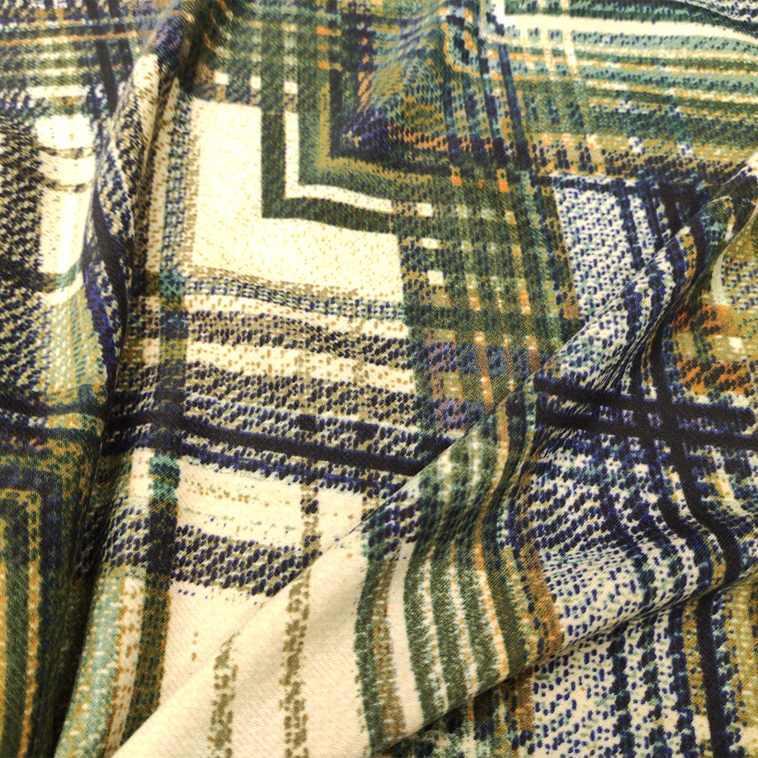Tessuto Punto Milano a fantasia motivo geometrico blu – verde – panna