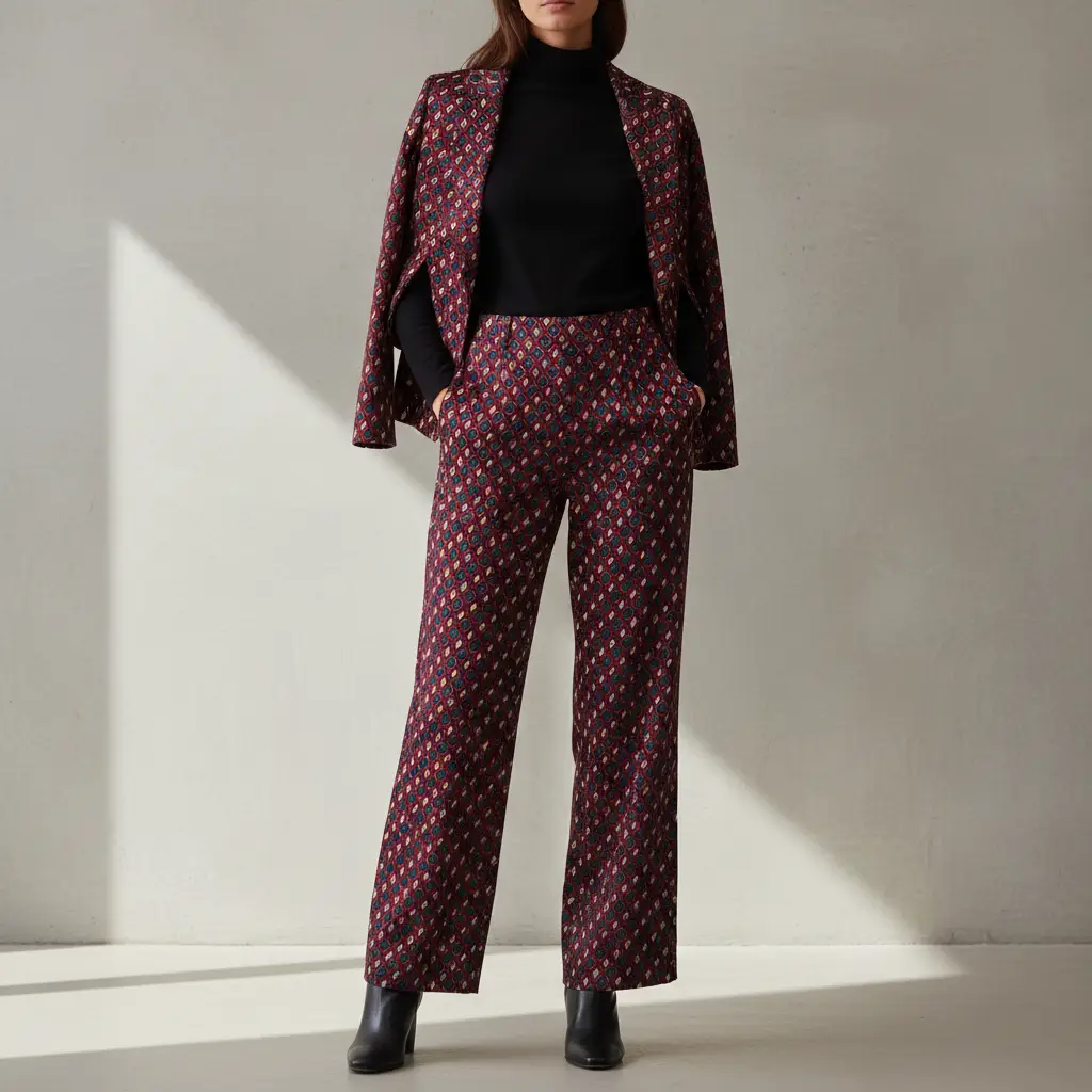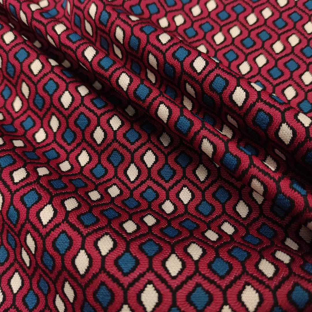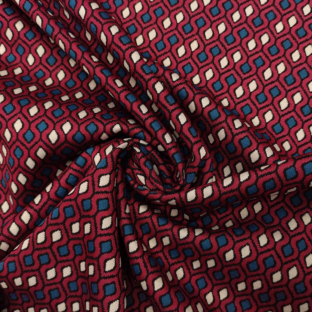 Tessuto Punto Milano a fantasia motivo geometrico bordeaux – verde ottanio – nero