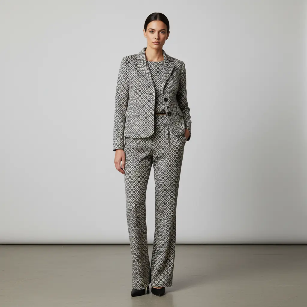 Tessuto Punto Milano a fantasia motivo geometrico grigio chiaro – grigio scuro – beige – nero