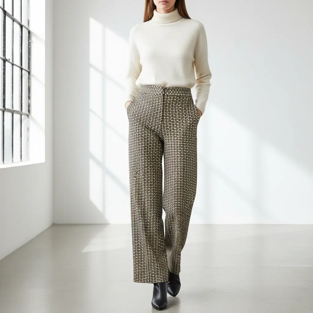 Tessuto Punto Milano a fantasia motivo geometrico lurex panna – nero – marroncino