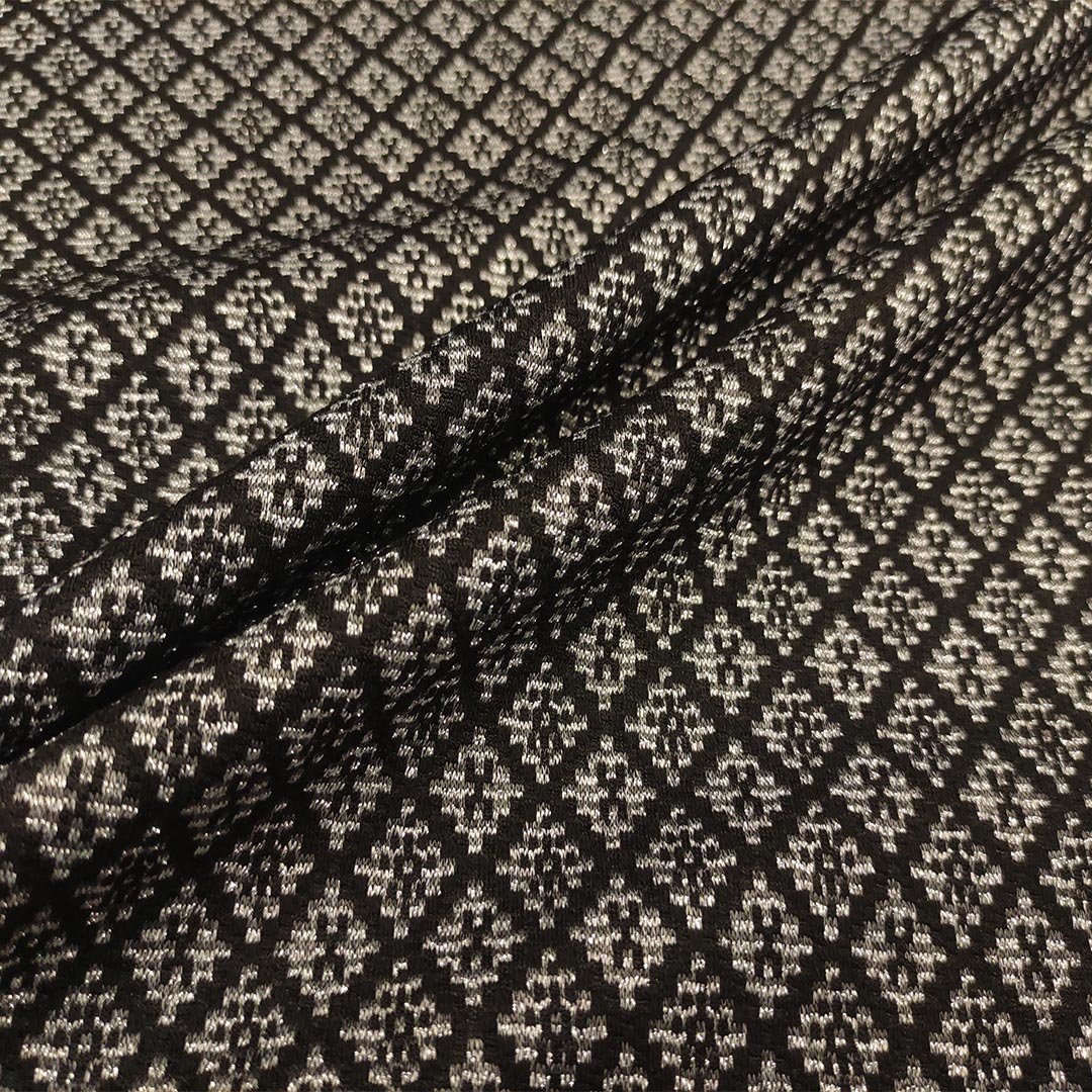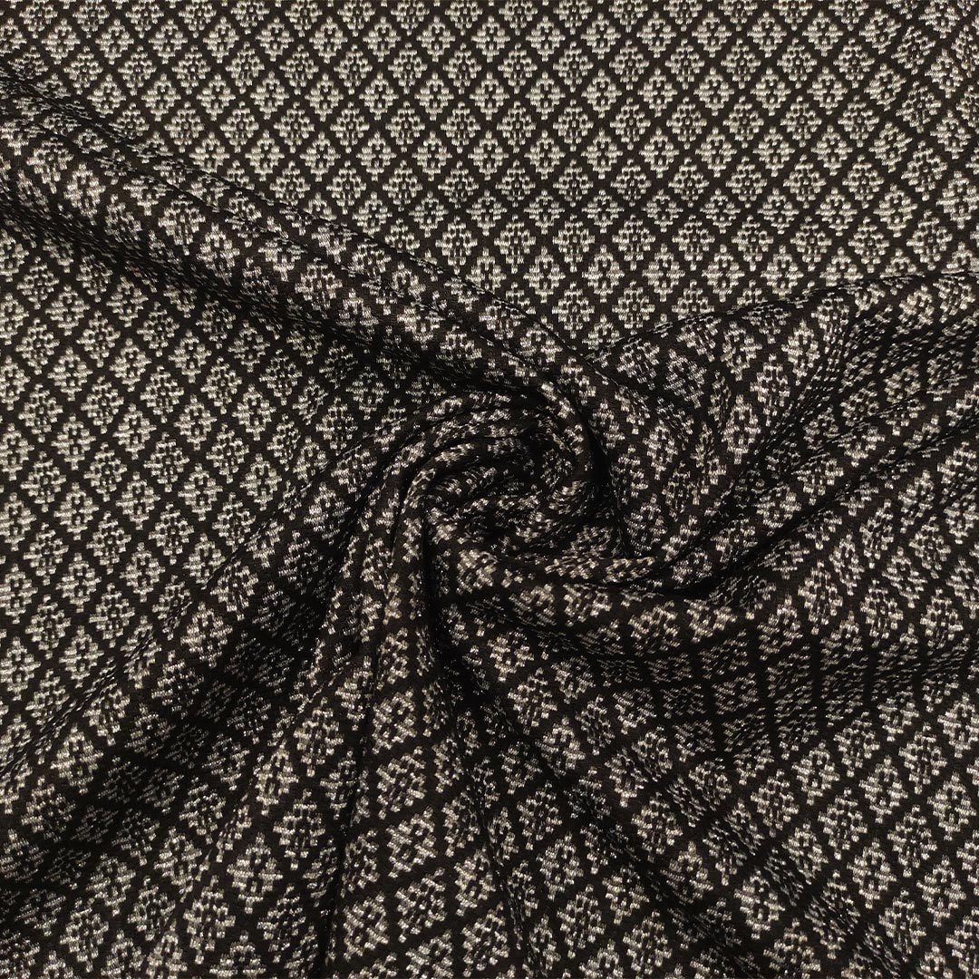 Tessuto Punto Milano a fantasia motivo geometrico nero – argento – grigio
