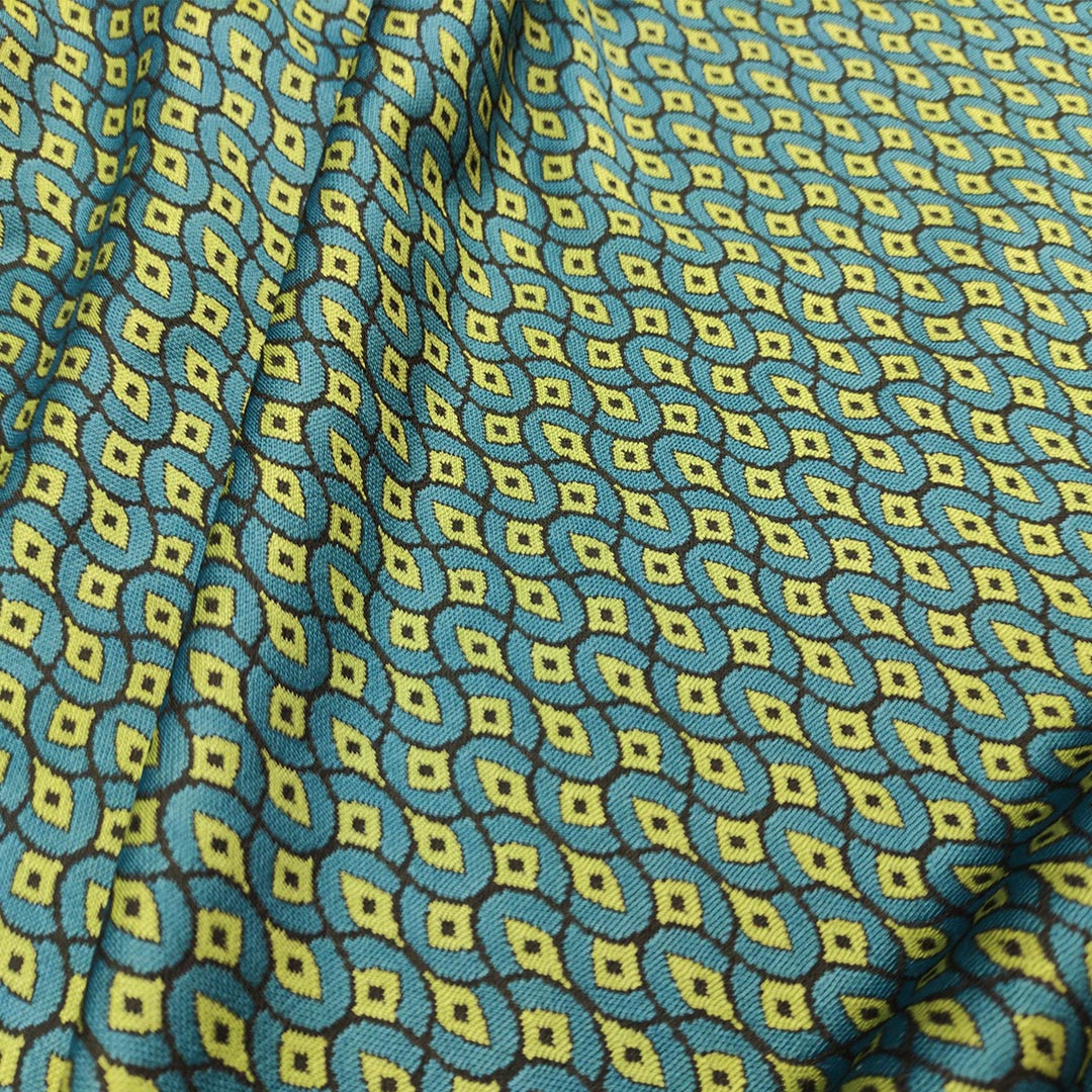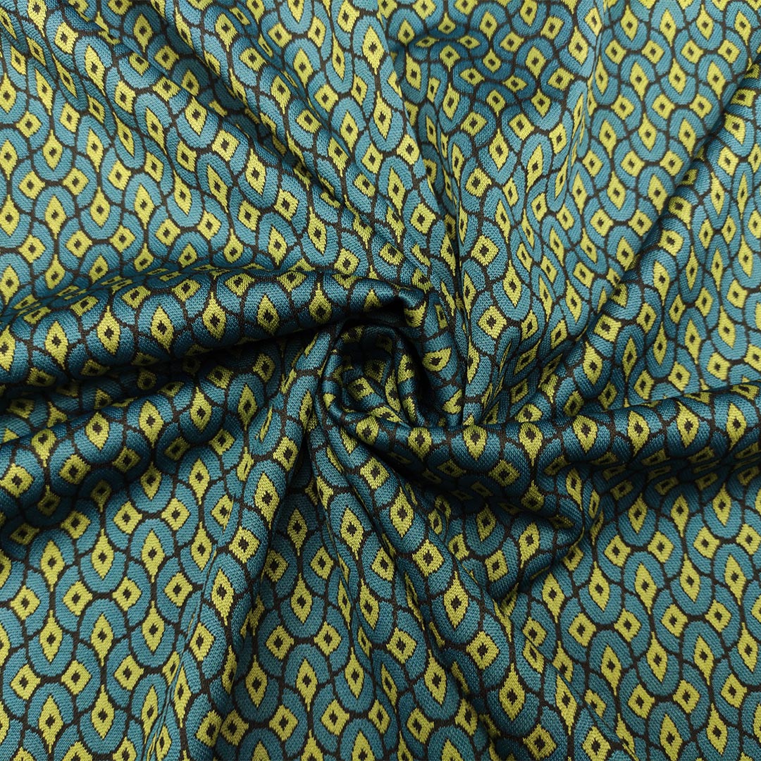 Tessuto Punto Milano a fantasia motivo geometrico ottanio – verde acido – nero