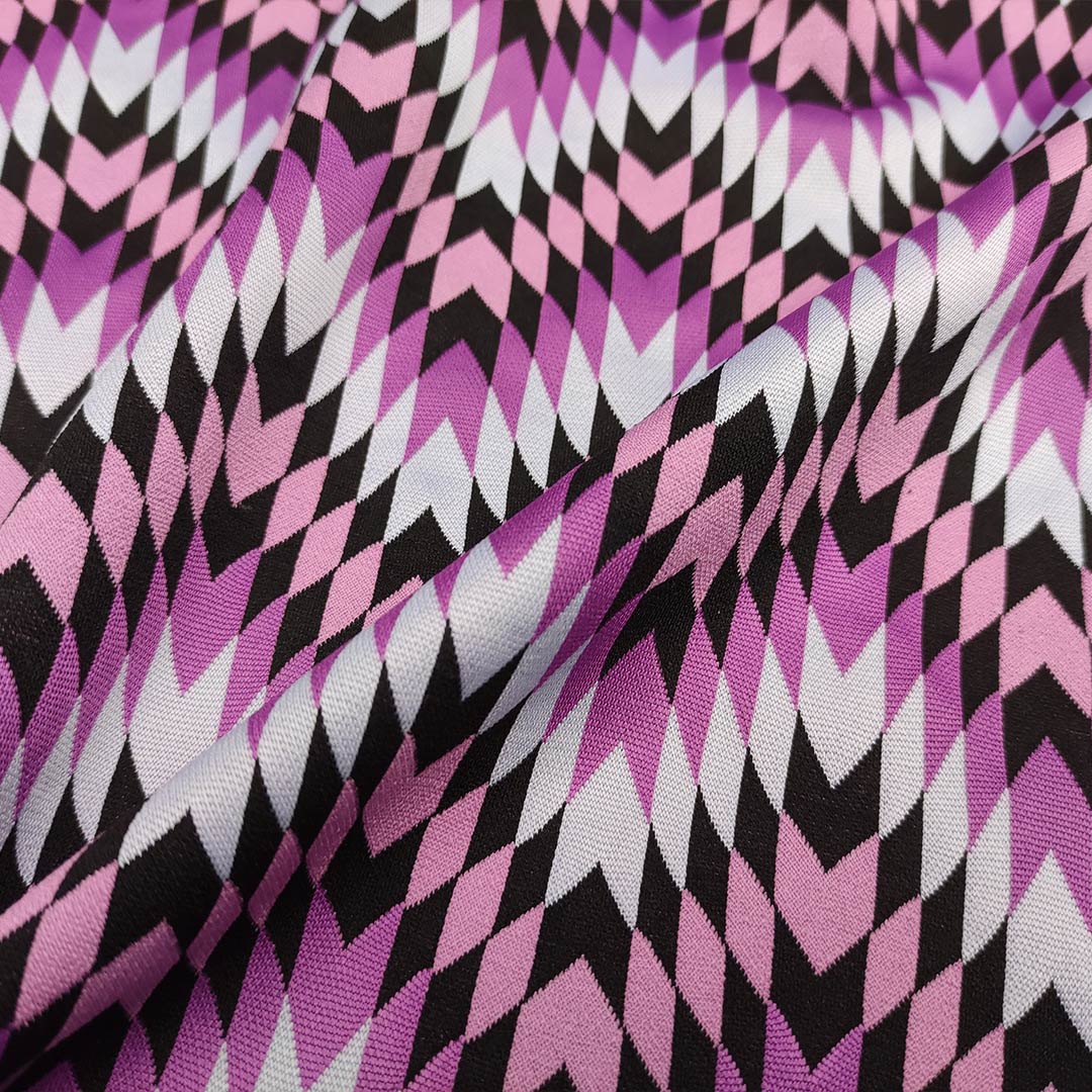 Tessuto Punto Milano a fantasia, bielastico è molto simile al Jersey, dalla mano corposa, morbida, comoda e resistente, è indicato per l’abbigliamento pratico e comodo infatti è utilizzato per realizzare capi come: tute, abiti, pantaloni, giacche e gonne.