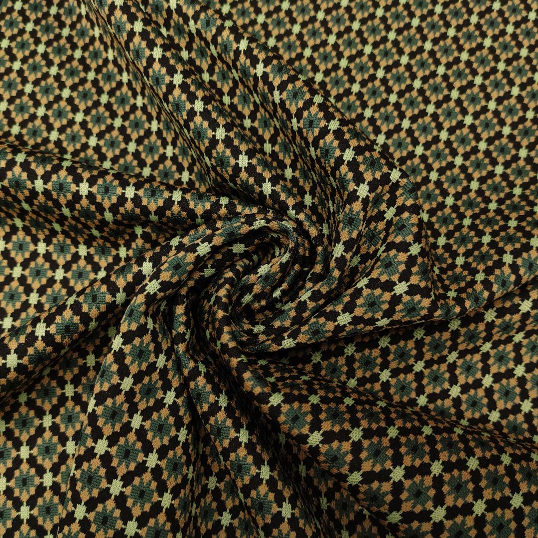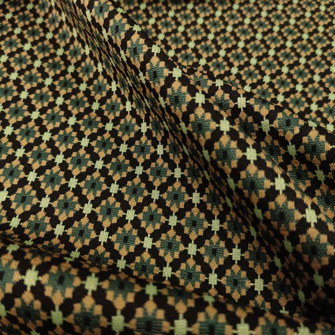Tessuto Punto Milano a fantasia, bielastico è molto simile al Jersey, dalla mano corposa, morbida, comoda e resistente, è indicato per l’abbigliamento pratico e comodo infatti è utilizzato per realizzare capi come: tute, abiti, pantaloni, giacche e gonne.