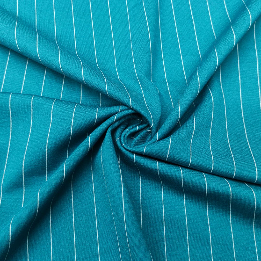 Tessuto Punto Milano a fantasia motivo gessato ottanio – bianco