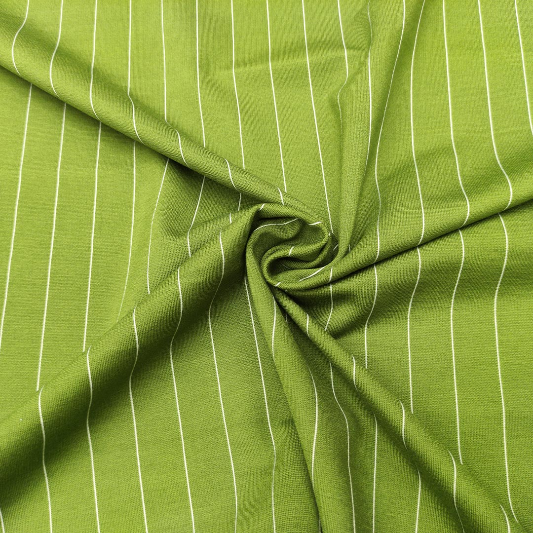 Tessuto Punto Milano a fantasia motivo gessato verde acido – bianco