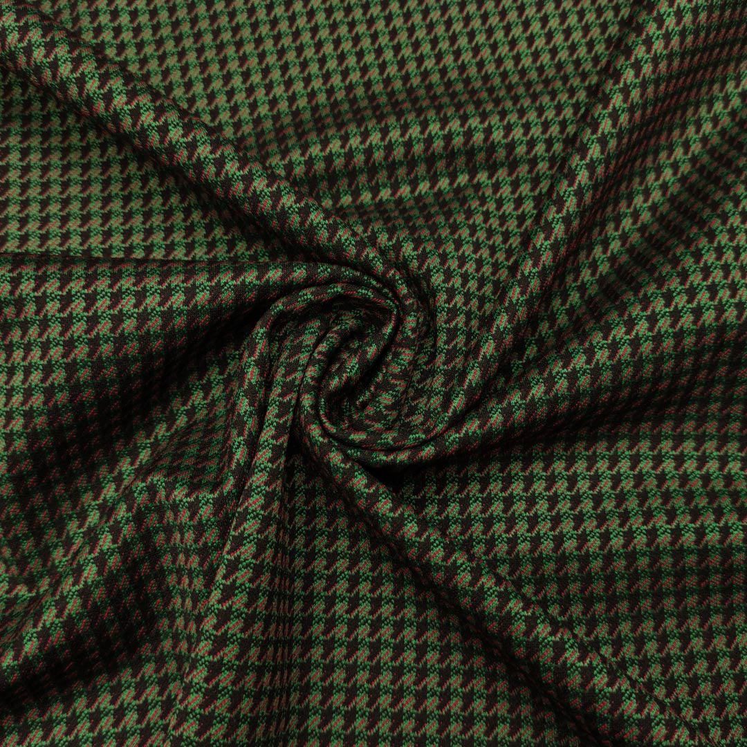 Tessuto Punto Milano a fantasia motivo pied de poule nero – fucsia – verde