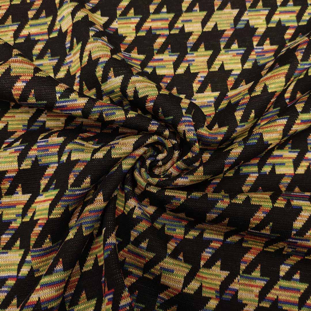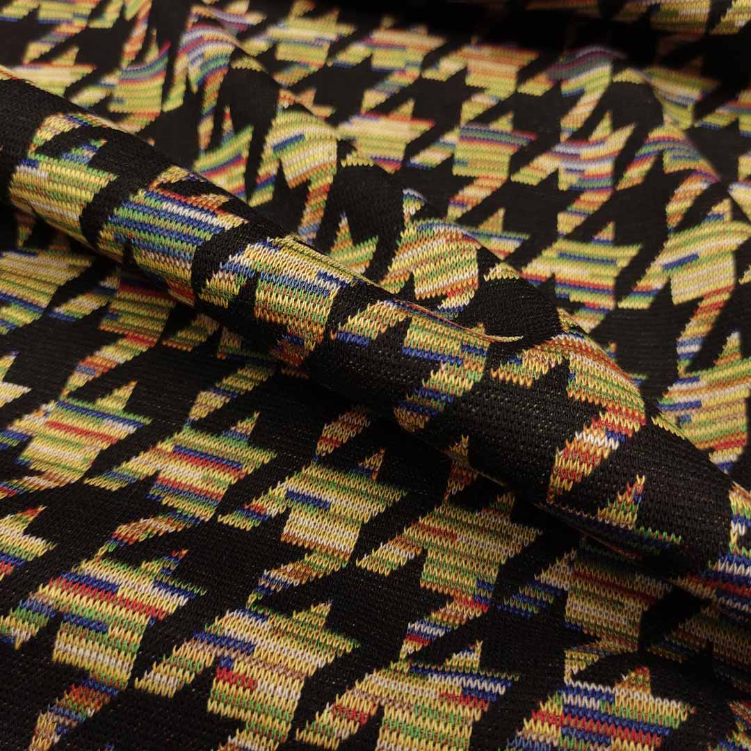 Tessuto Punto Milano a fantasia motivo pied de poule nero – verde – blu