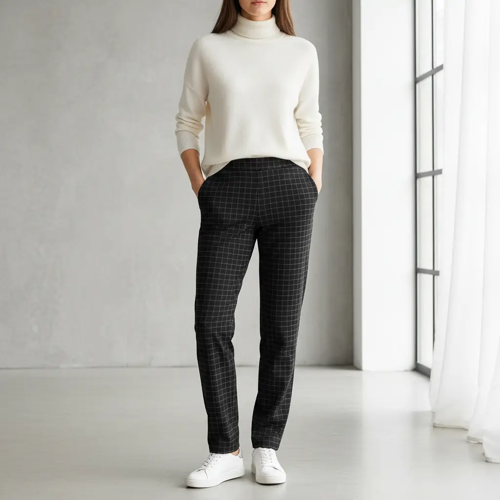 Tessuto Punto Milano a fantasia motivo quadri nero – beige