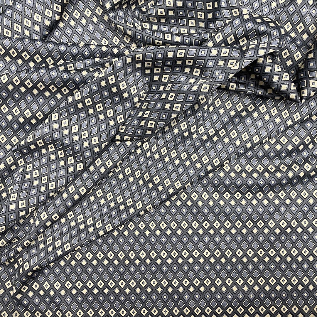 Tessuto Punto Milano a fantasia motivo rombi grigio piombo – grigio – beige – nero