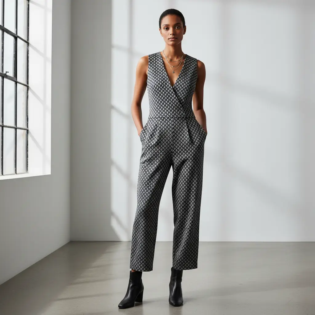 Tessuto Punto Milano a fantasia motivo rombo piccolo grigio – tortora – nero