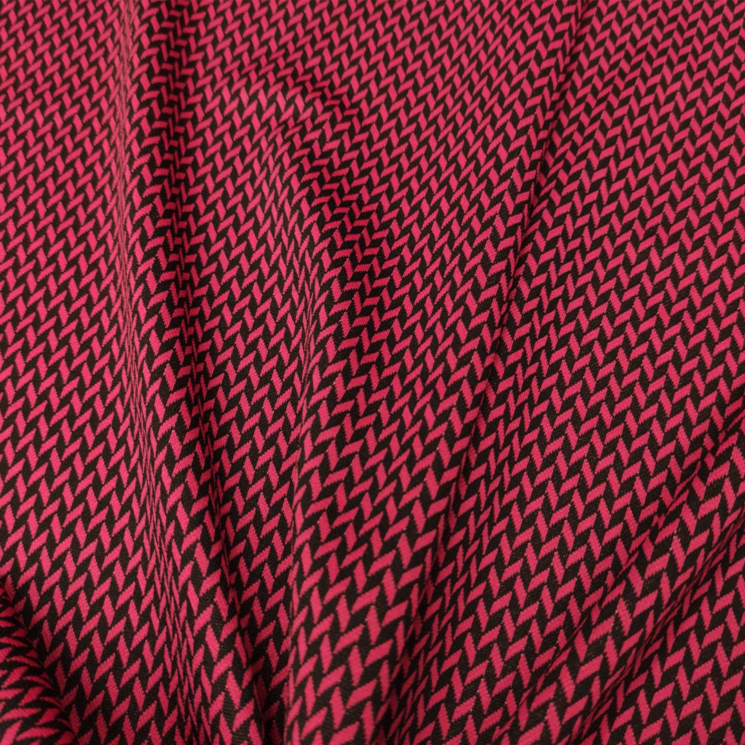 Tessuto Punto Milano a fantasia motivo spigato nero – fucsia