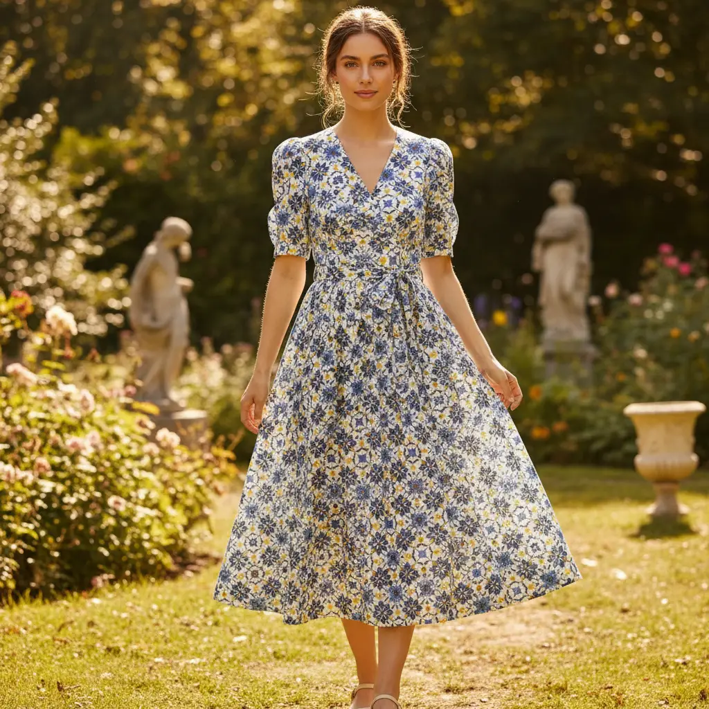 Tessuto Sangallo a fantasia dalla mano morbida e leggera, ideale per realizzare capi colorati e freschi come: abiti, gonne, pantaloni e camicie.