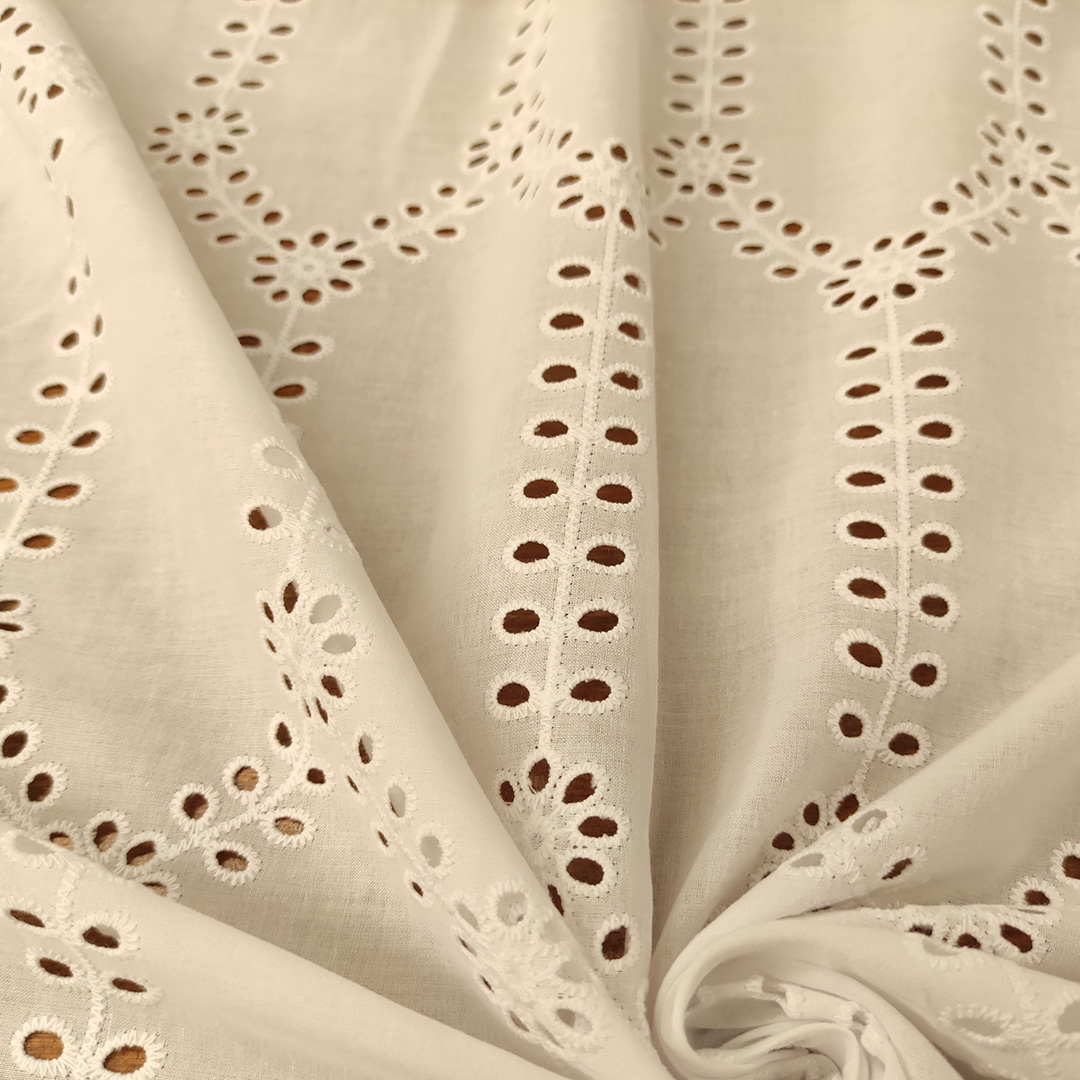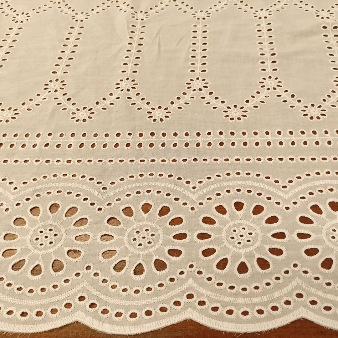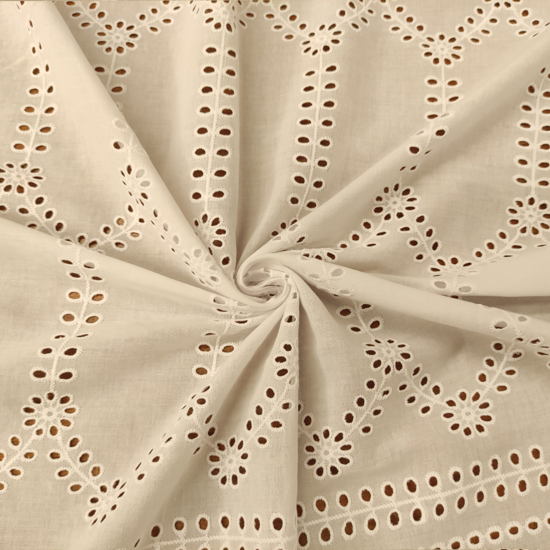 Tessuto Sangallo doppio smerlo motivo astratto bianco ottico