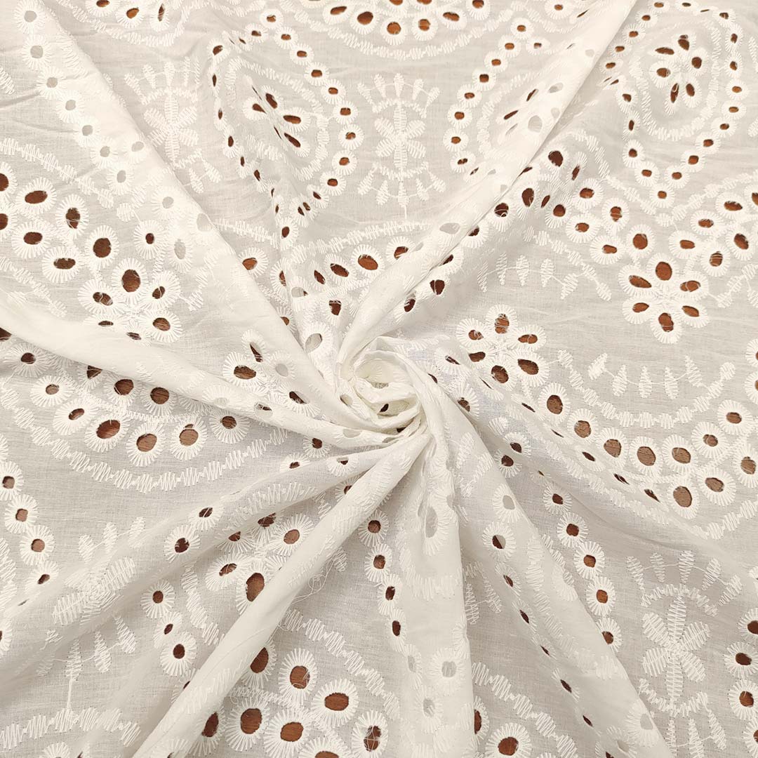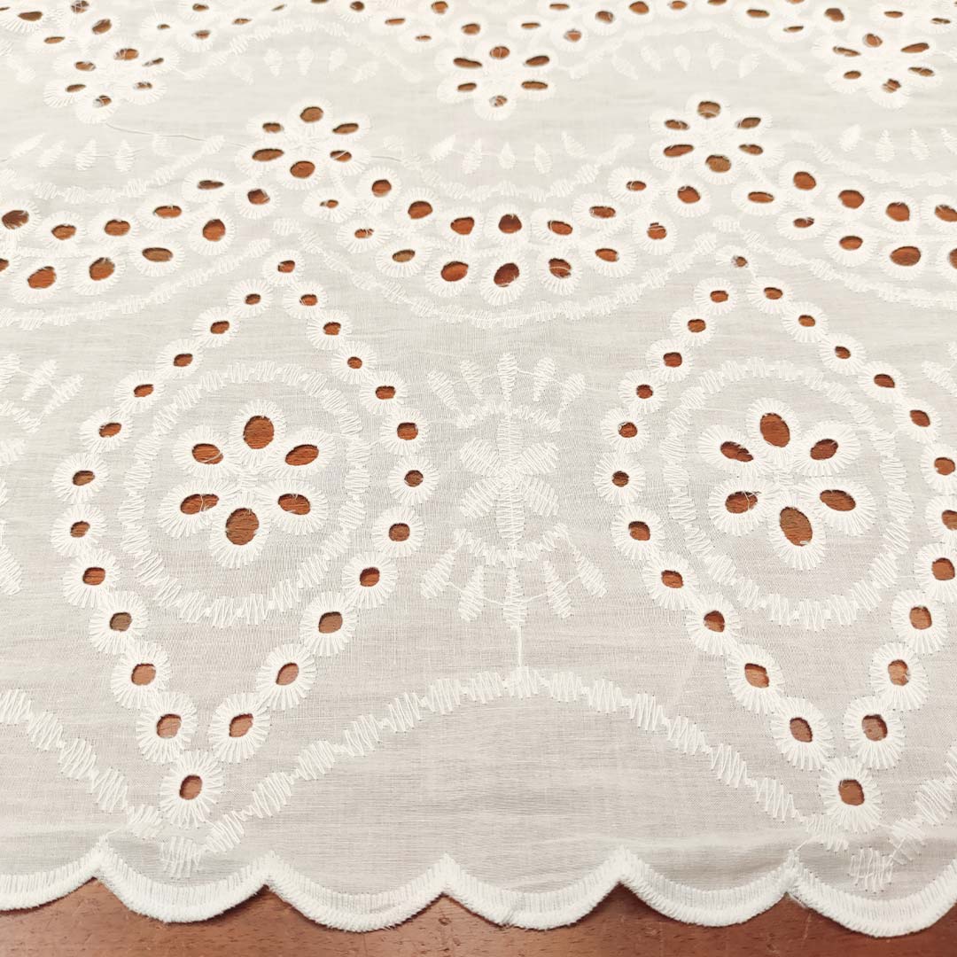 Tessuto Sangallo doppio smerlo motivo astratto bianco seta