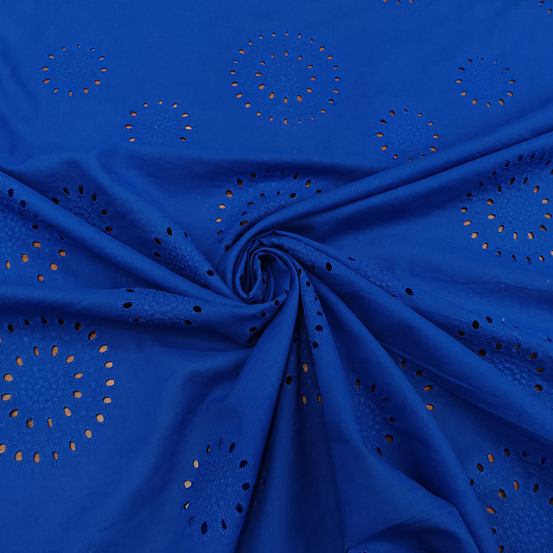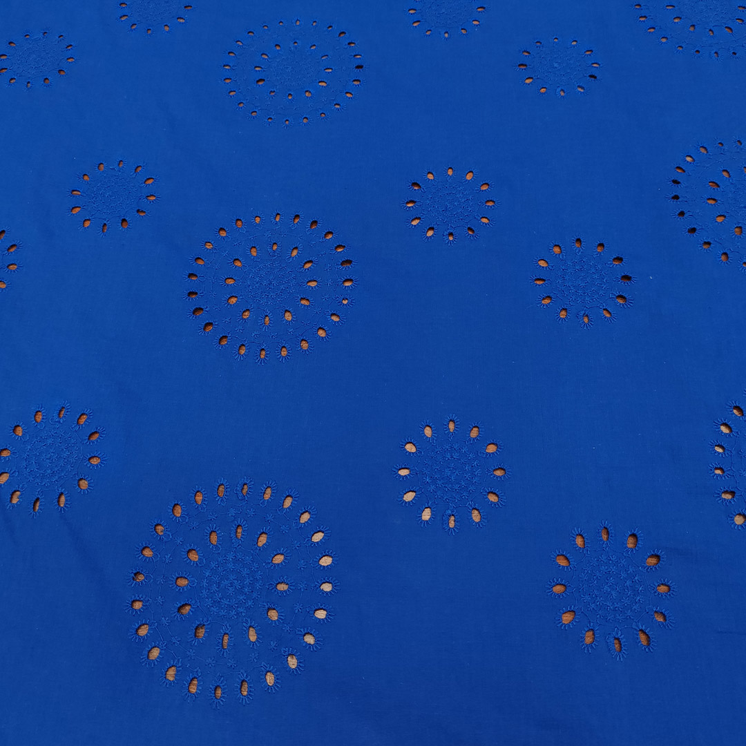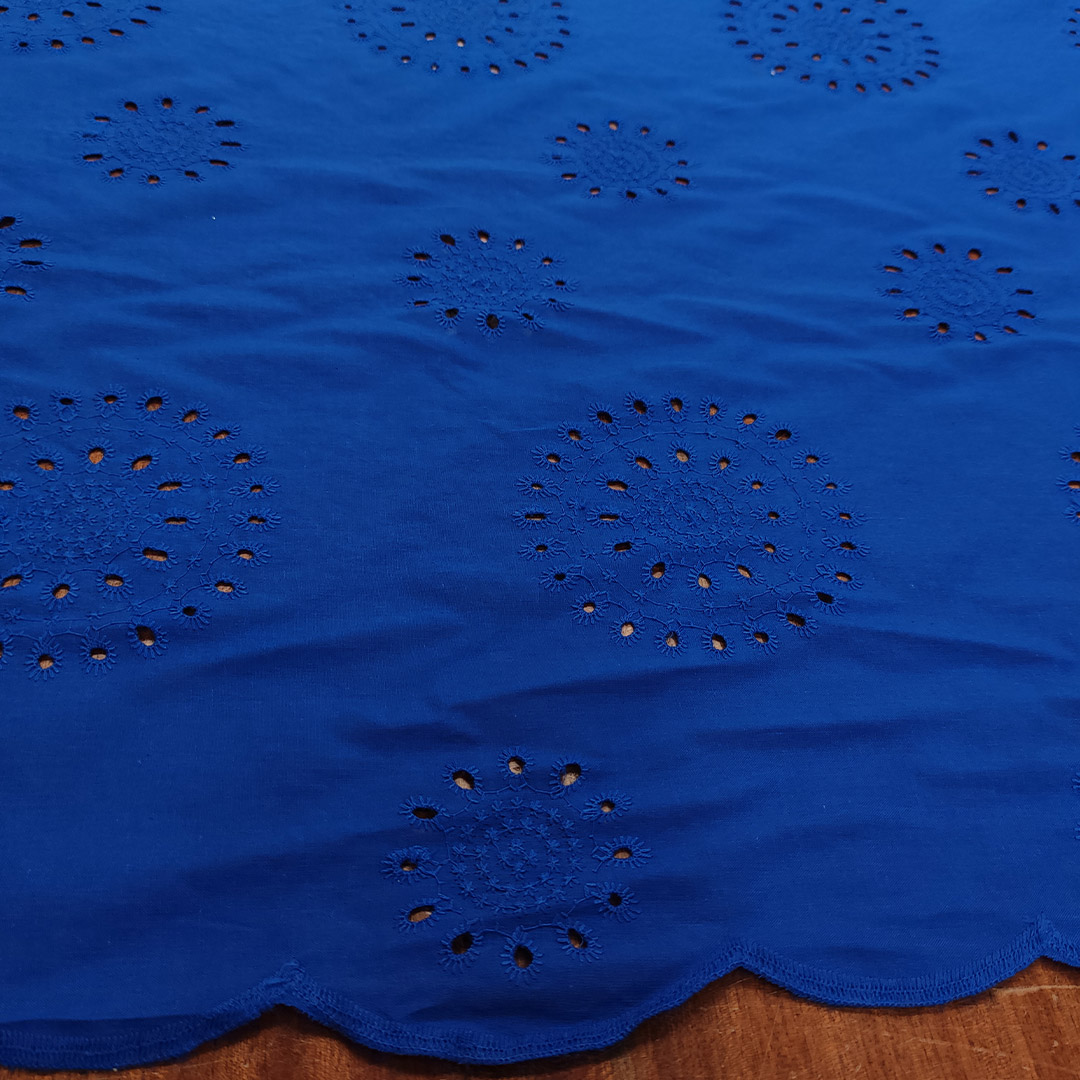 Tessuto Sangallo doppio smerlo motivo astratto blu elettrico