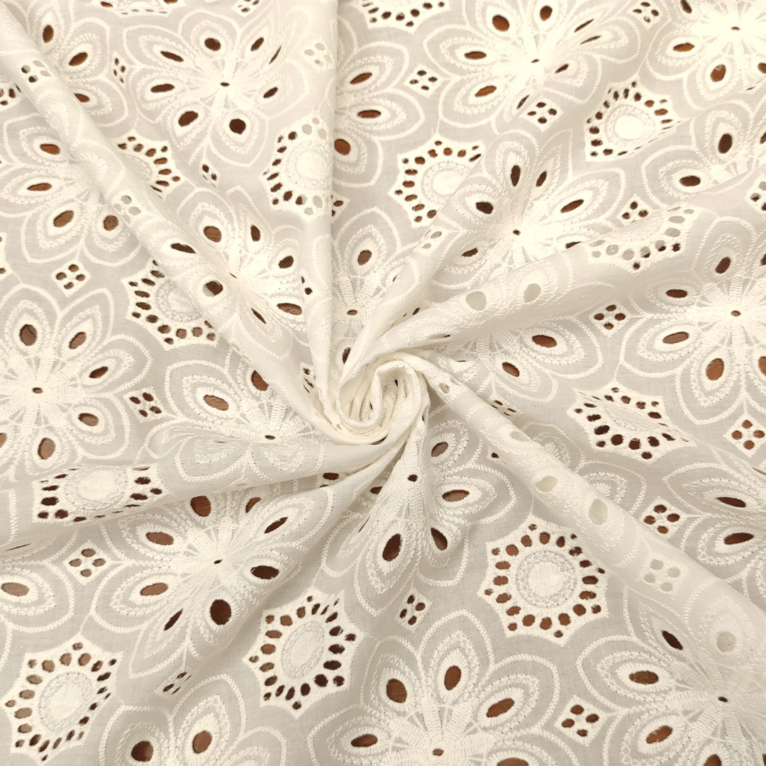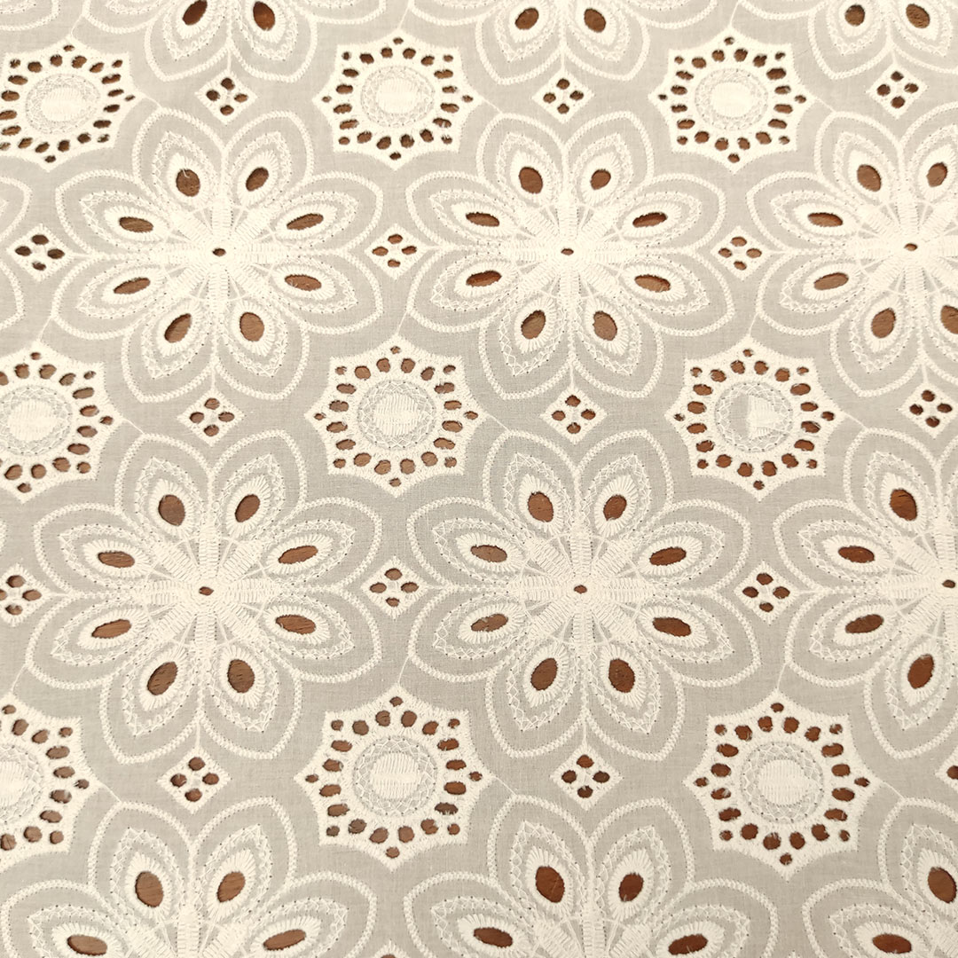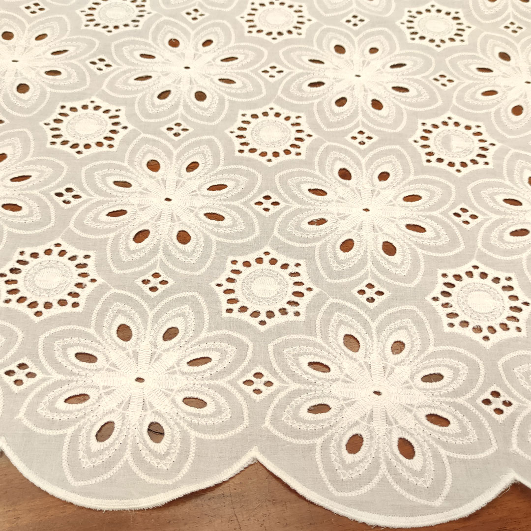 Tessuto Sangallo doppio smerlo motivo floreale bianco