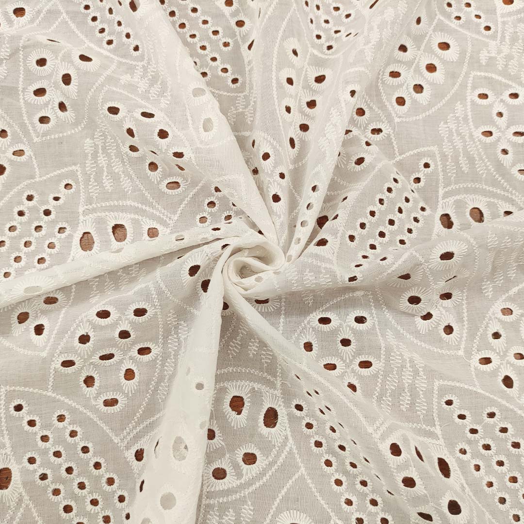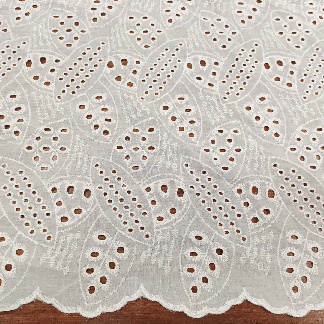 Tessuto Sangallo doppio smerlo motivo geometrico bianco seta