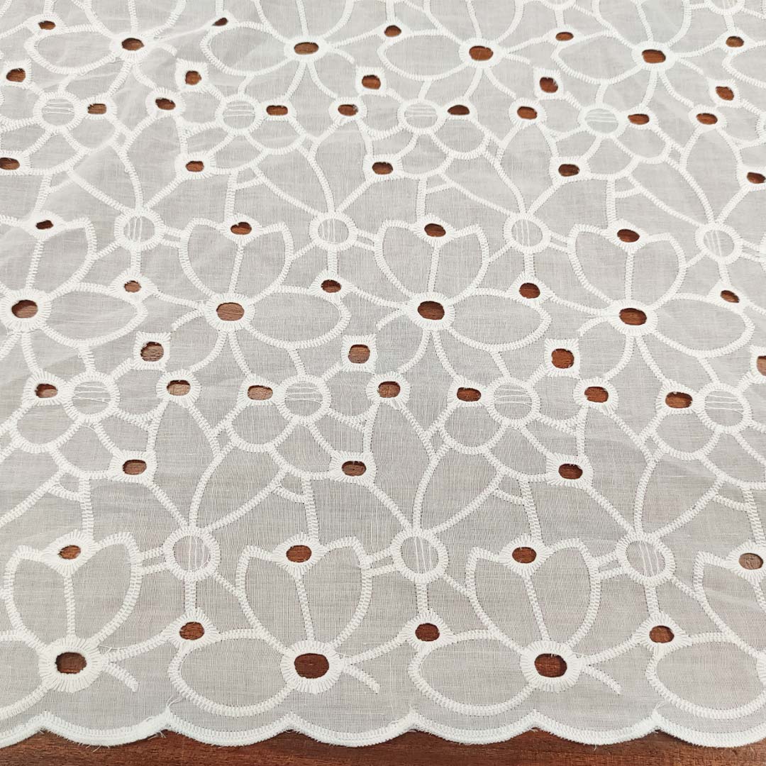 Tessuto Sangallo doppio smerlo motivo girasole bianco seta