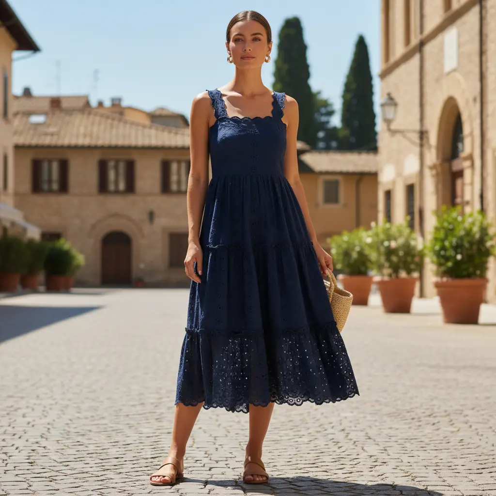 Tessuto Sangallo in tinta unita dalla mano morbida e leggera, smerlato ambo i lati, ideale per realizzare capi colorati e freschi come: abiti, gonne, pantaloni e camicie.