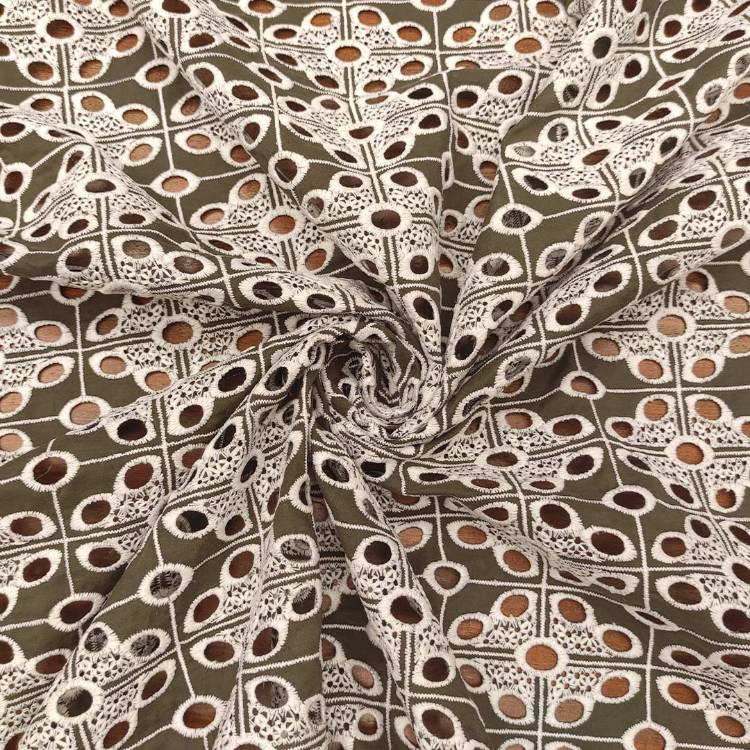 Tessuto Sangallo in tinta unita verde militare – bianco