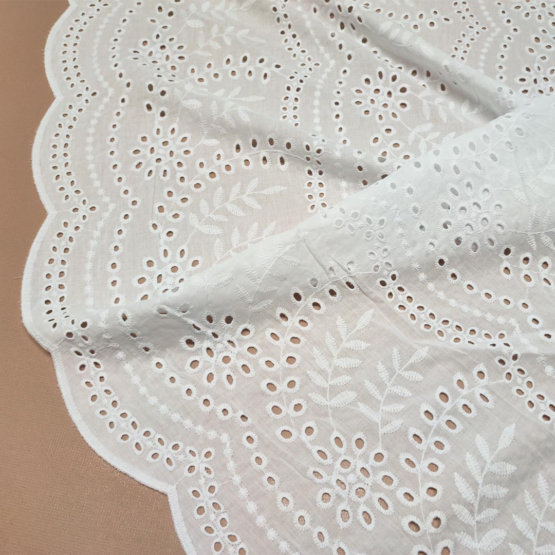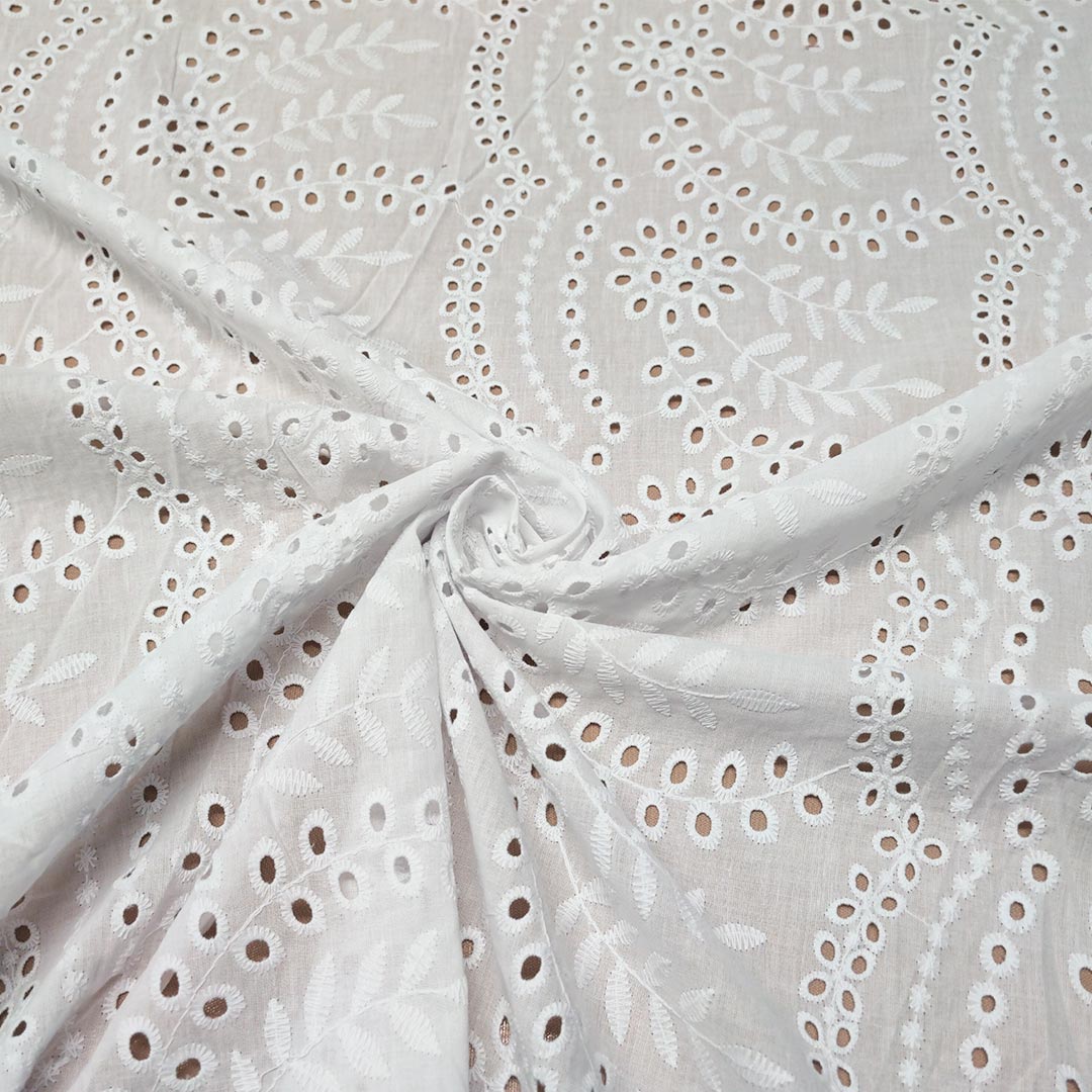 Tessuto Sangallo tinta unita motivo floreale bianco DIS.01