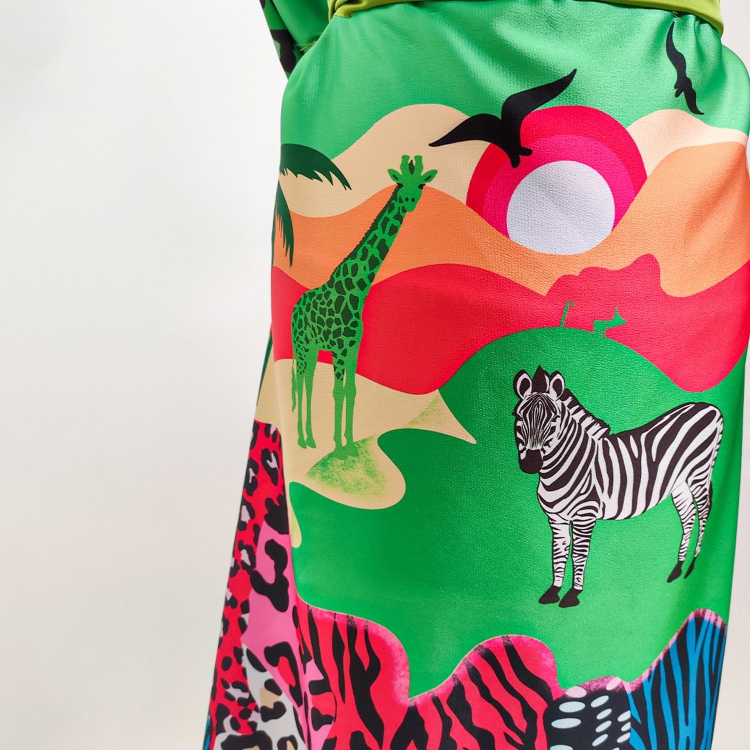 Tessuto Satin a fantasia motivo animalier – astratto verde