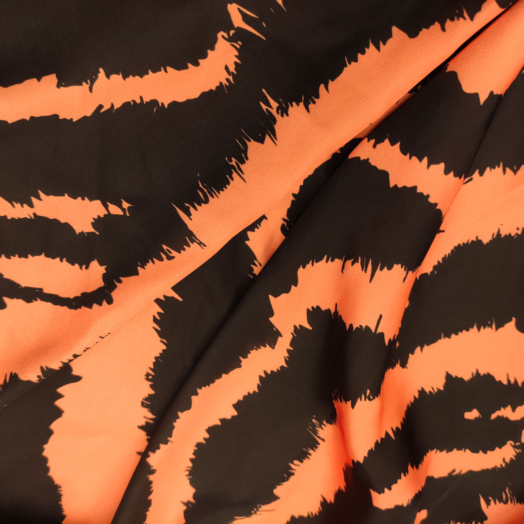 Tessuto Satin a fantasia motivo animalier nero – arancione
