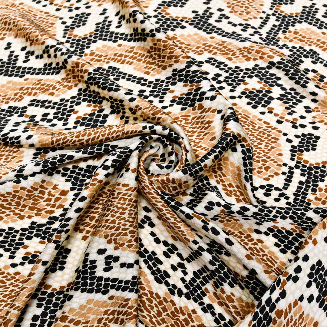 Tessuto Satin a fantasia motivo animalier nero – tabacco – beige