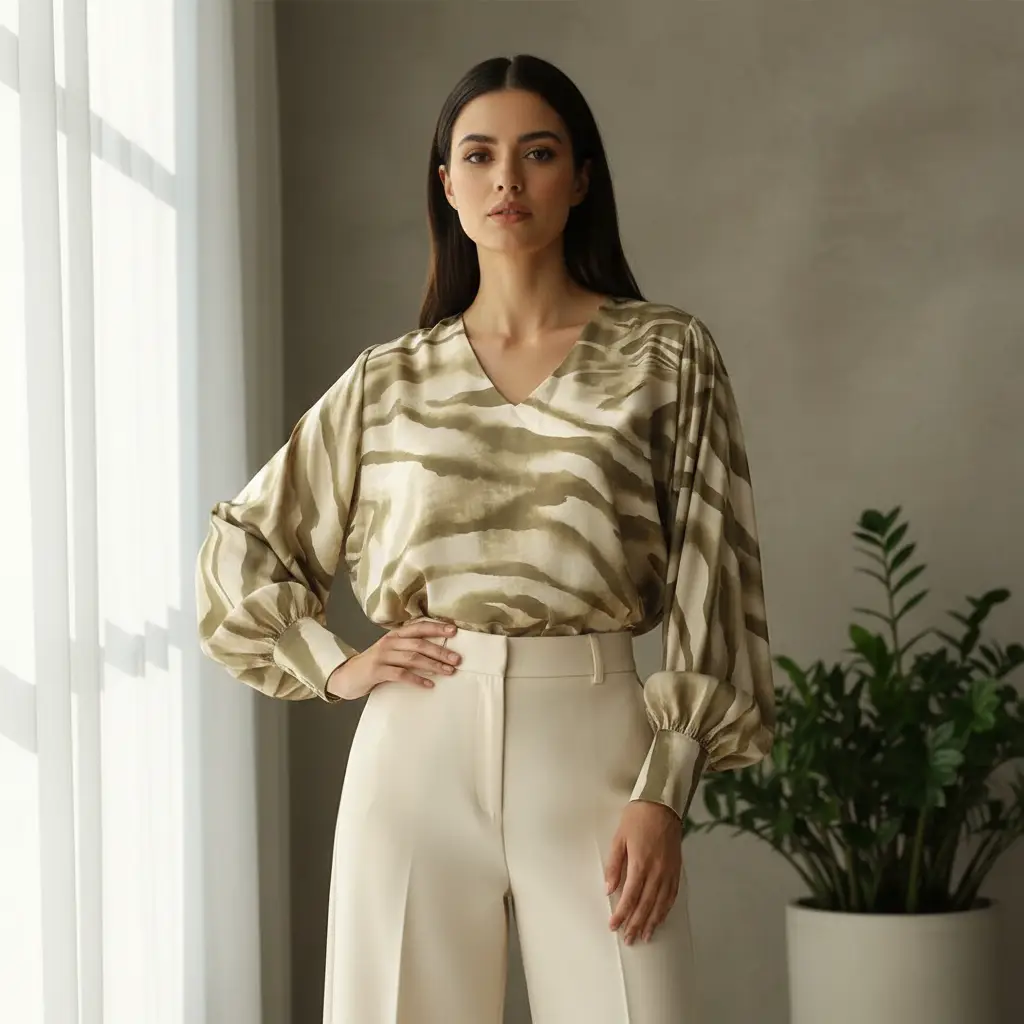 Tessuto Satin a fantasia dalla mano morbida, cadente e fluida, dall’aspetto semilucido si presta alla creazione di capi fluenti e morbidi da utilizzare in tutte le stagioni come: camicie, abiti, gonne, bluse, tute jumpsuit e pantaloni.