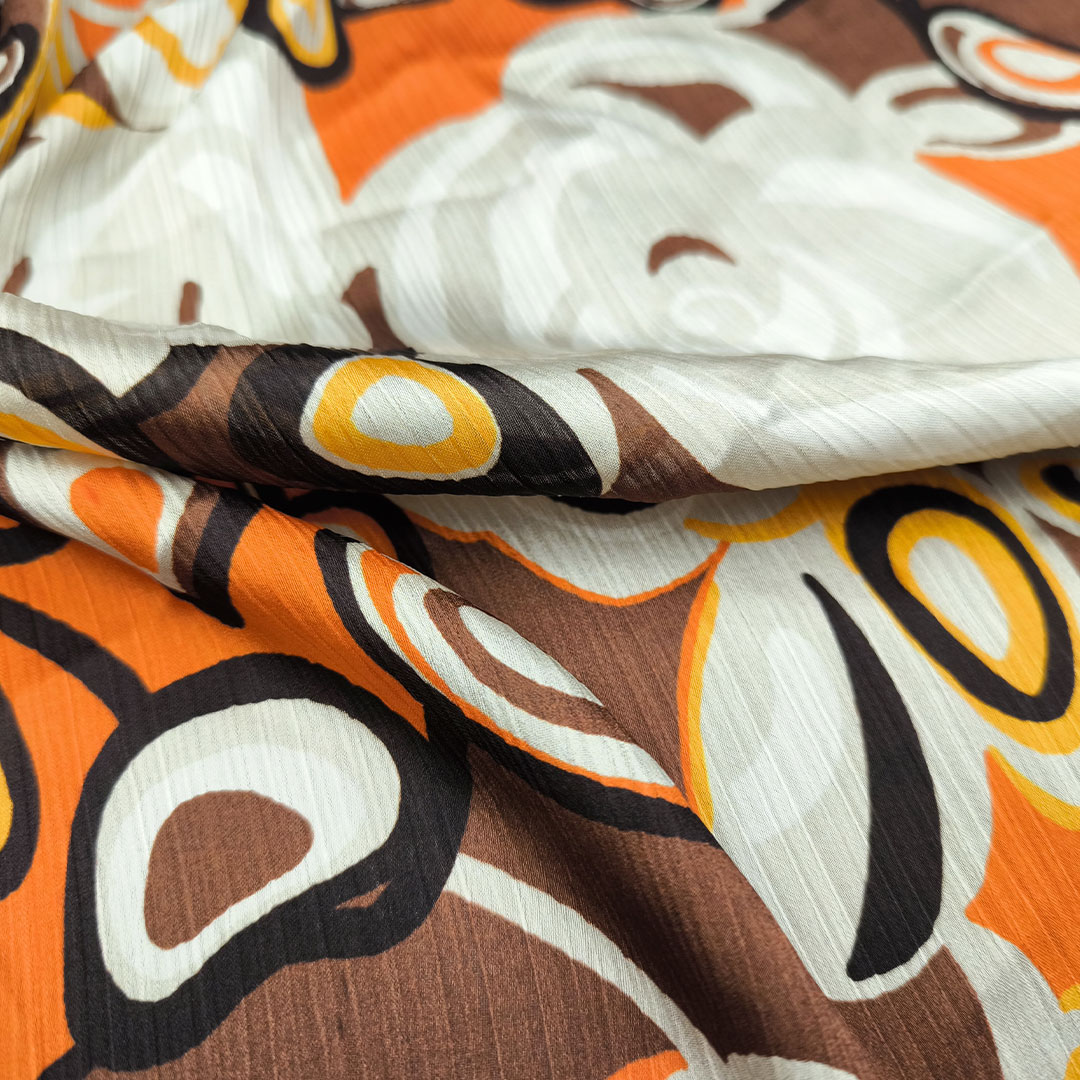 Tessuto Satin a fantasia dalla mano morbida, cadente e fluida, dall’aspetto semilucido si presta alla creazione di capi fluenti e morbidi da utilizzare in tutte le stagioni come: camicie, abiti, gonne, bluse, tute jumpsuit e pantaloni.