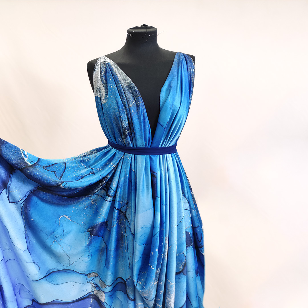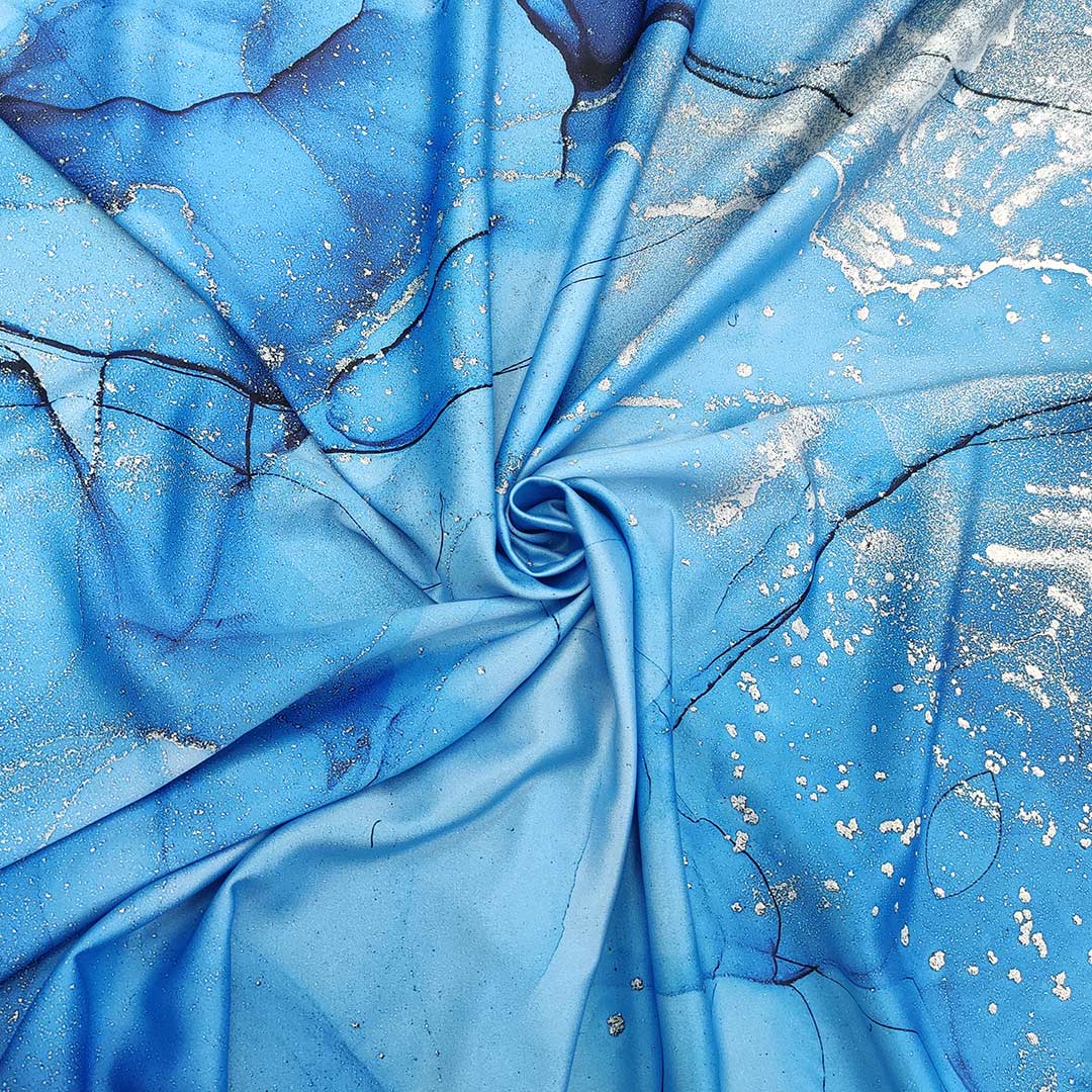 Tessuto Satin a fantasia motivo astratto azzurro – blu elettrico