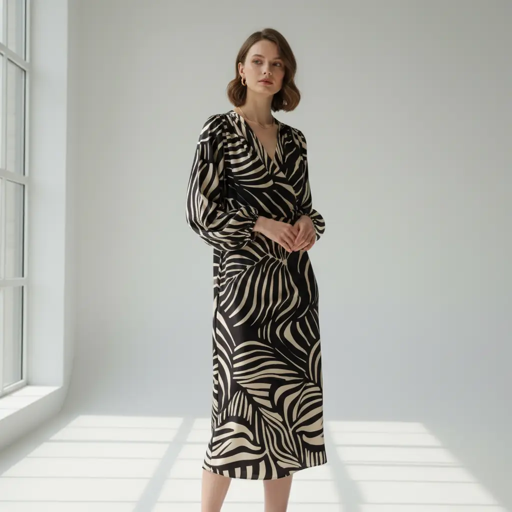 Tessuto Satin a fantasia dalla mano morbida, cadente e fluida, dall’aspetto semilucido si presta alla creazione di capi fluenti e morbidi da utilizzare in tutte le stagioni come: camicie, abiti, gonne, bluse, tute jumpsuit e pantaloni.